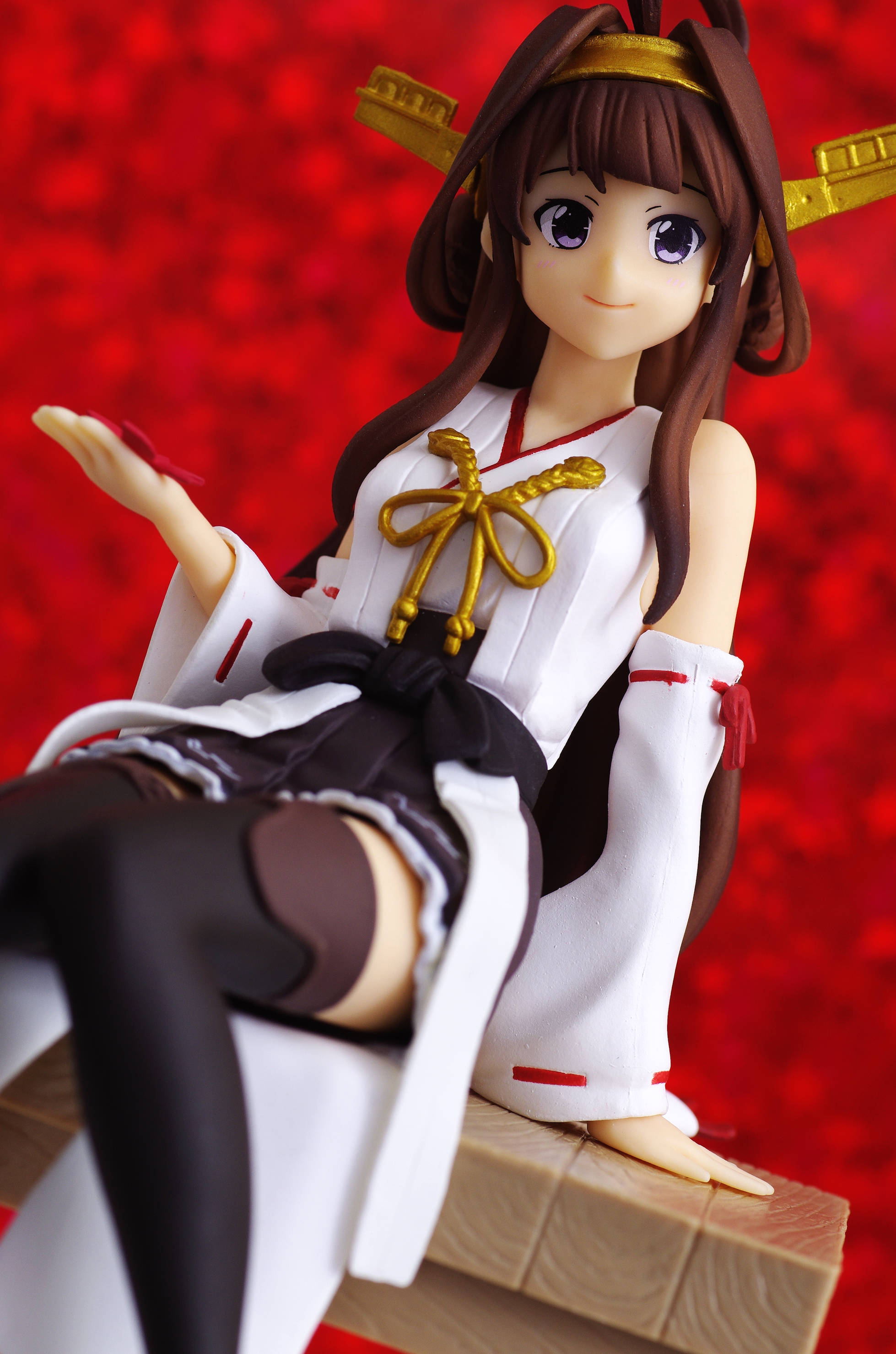縁側に腰かけ紅葉を楽しむ金剛さん♪しなったした座り方が色っぽいですなぁ❤(右手に乗せた紅葉が雰囲気ある)