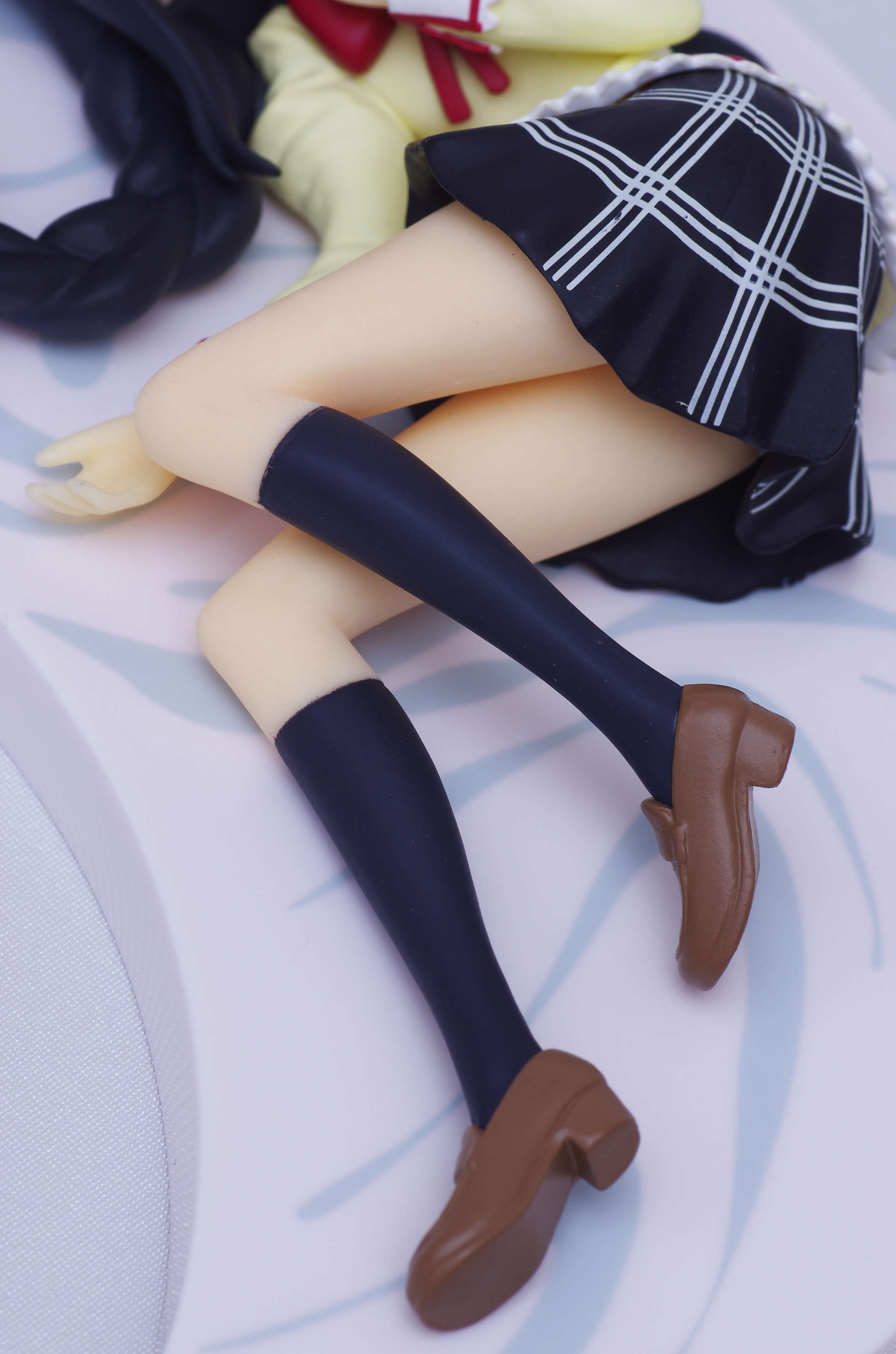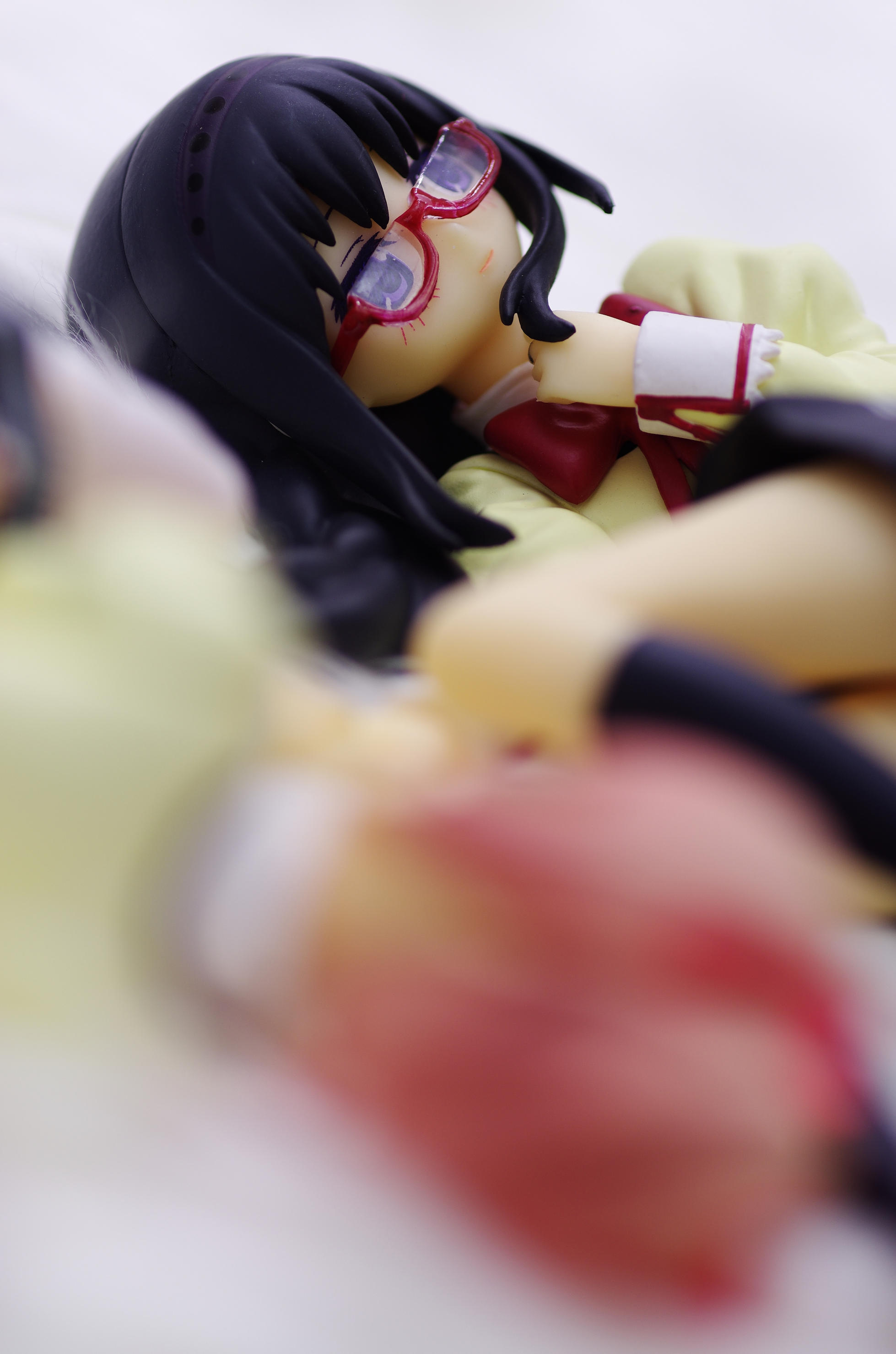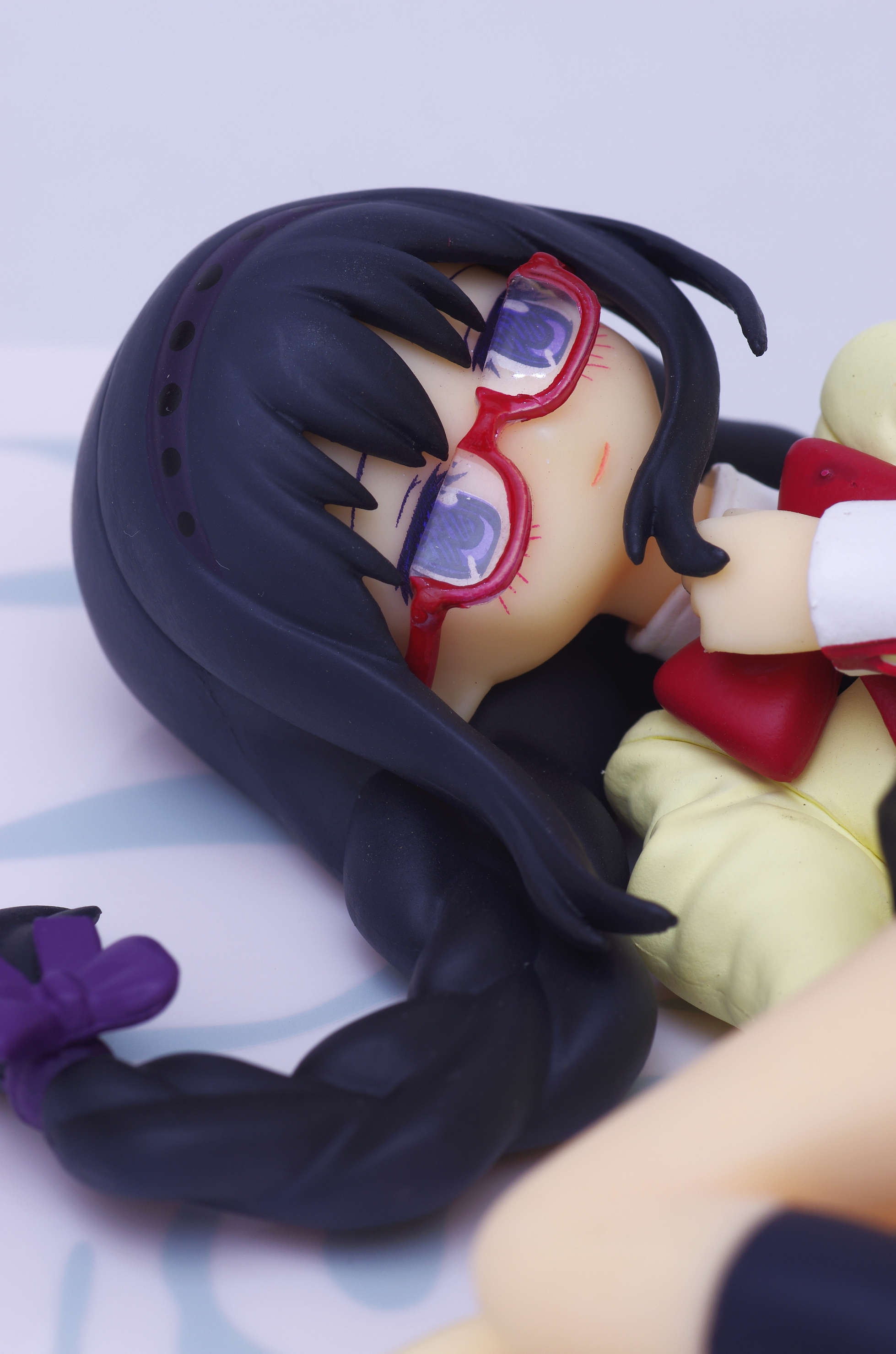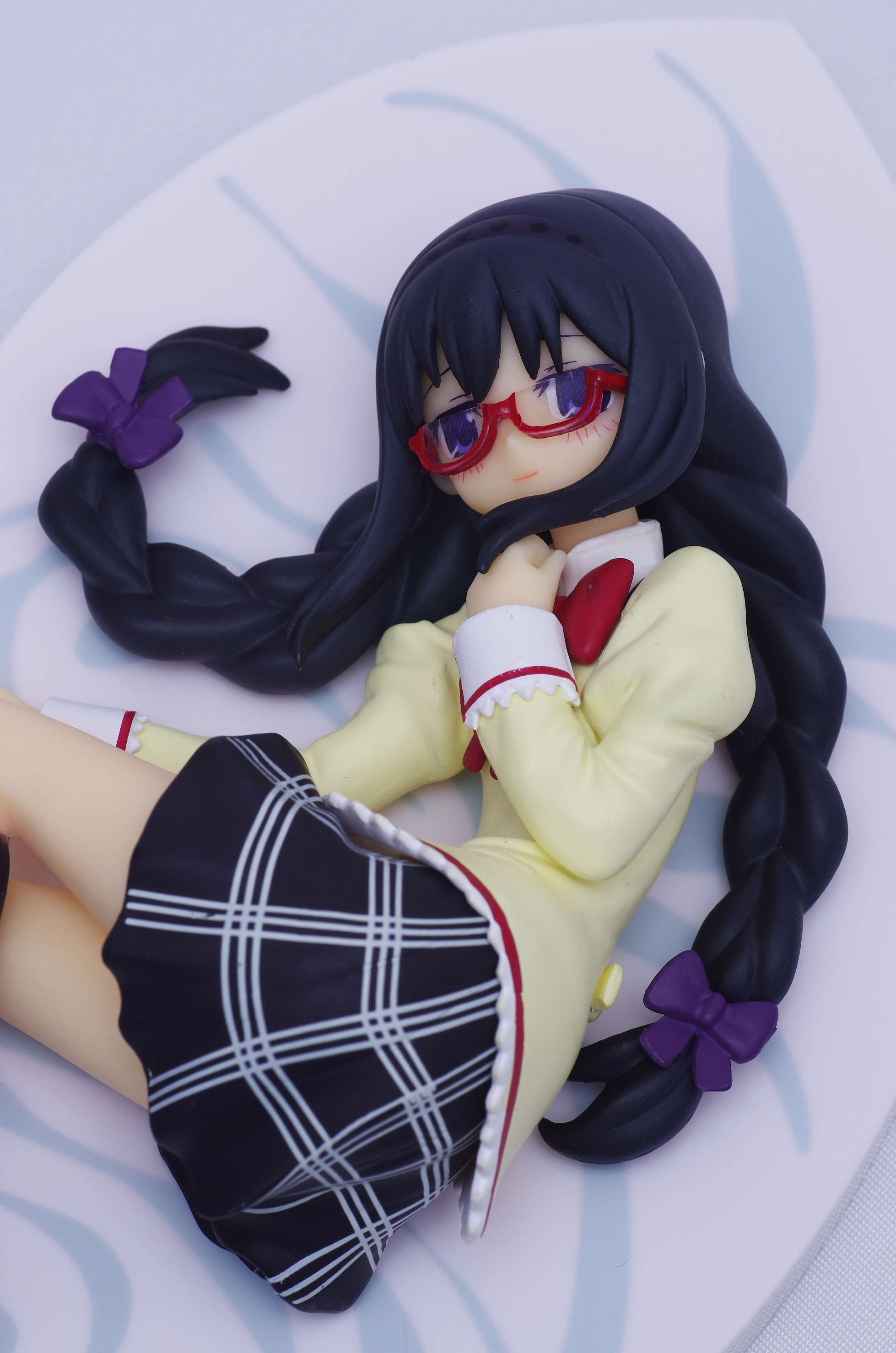 制服姿で寝ころんだポーズのほむほむ♪胸元に当てた手があざと可愛いくて良いですな(まどっちと並べてキマシ❤)