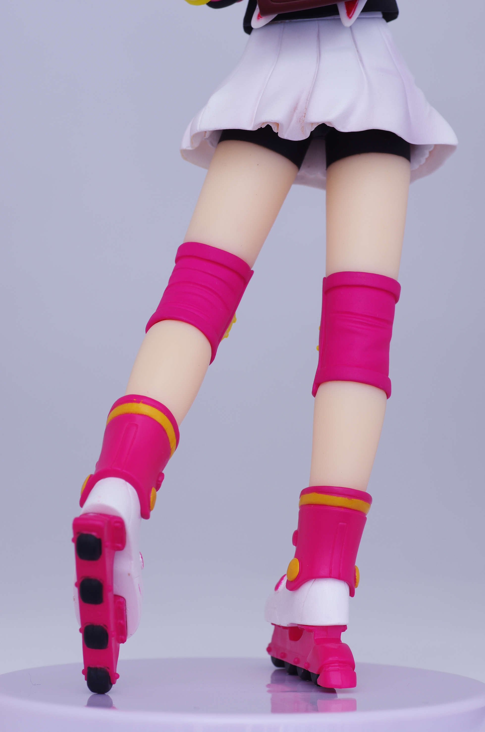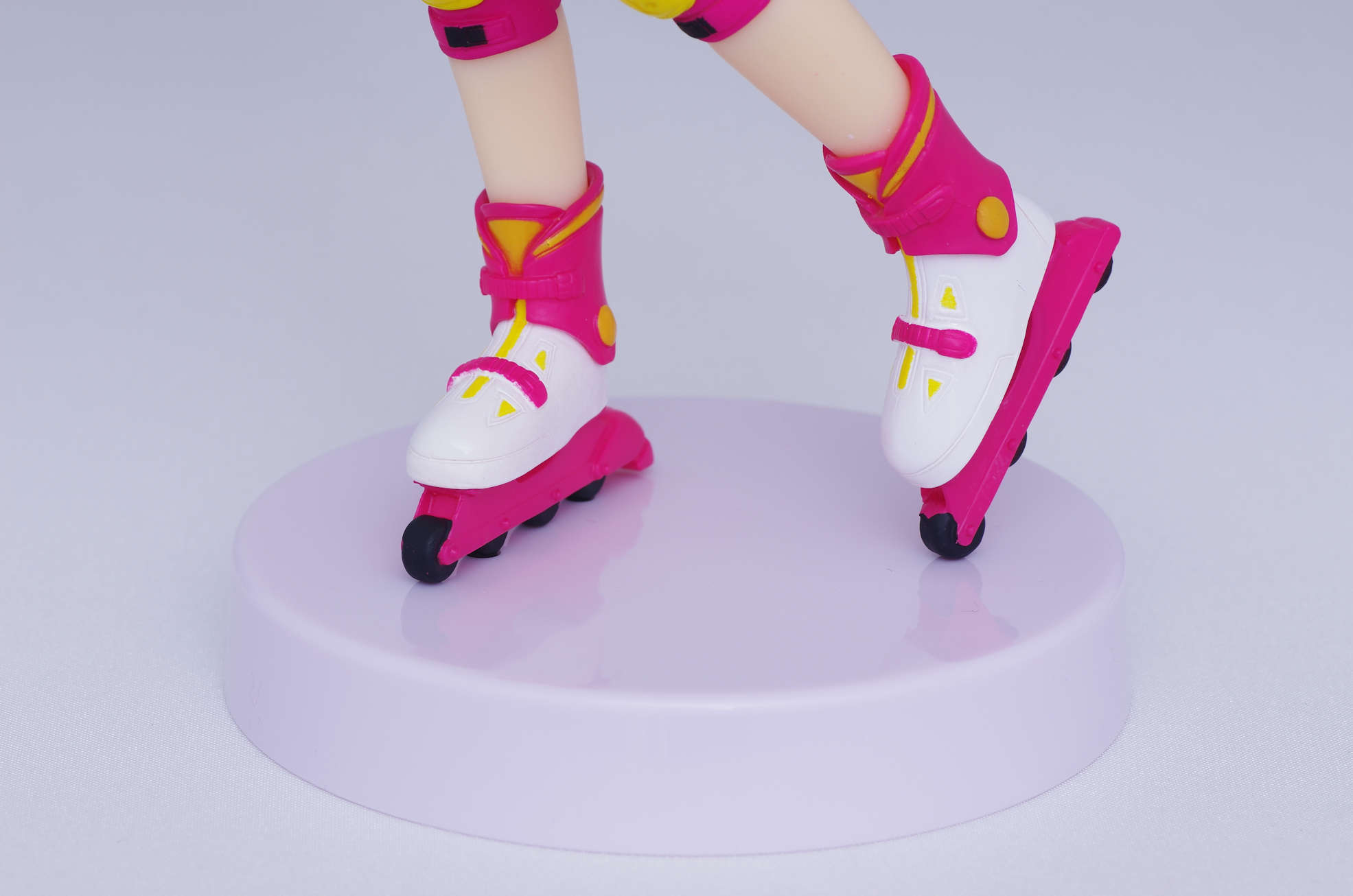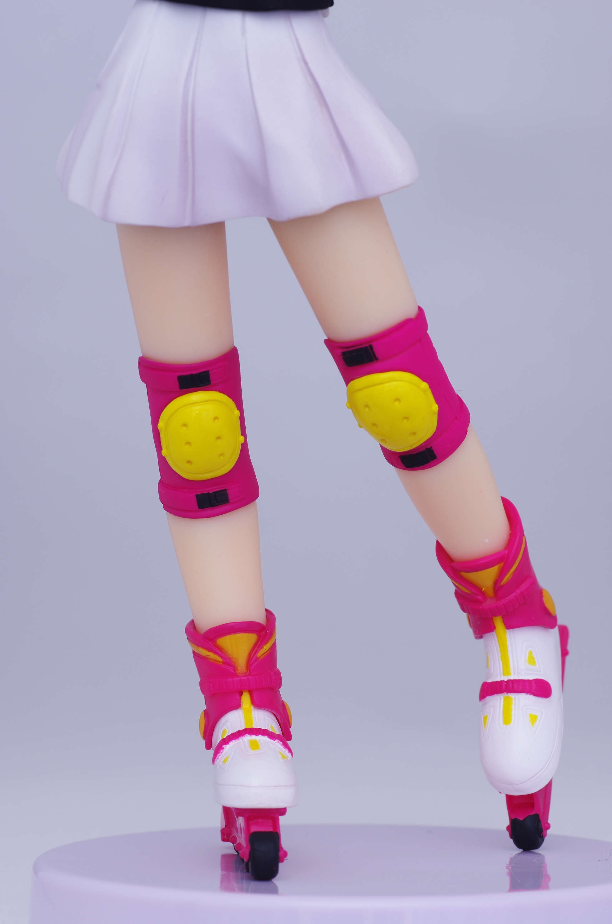 足にはニーパッドとインラインスケート(ピンク色がラブリー♪)