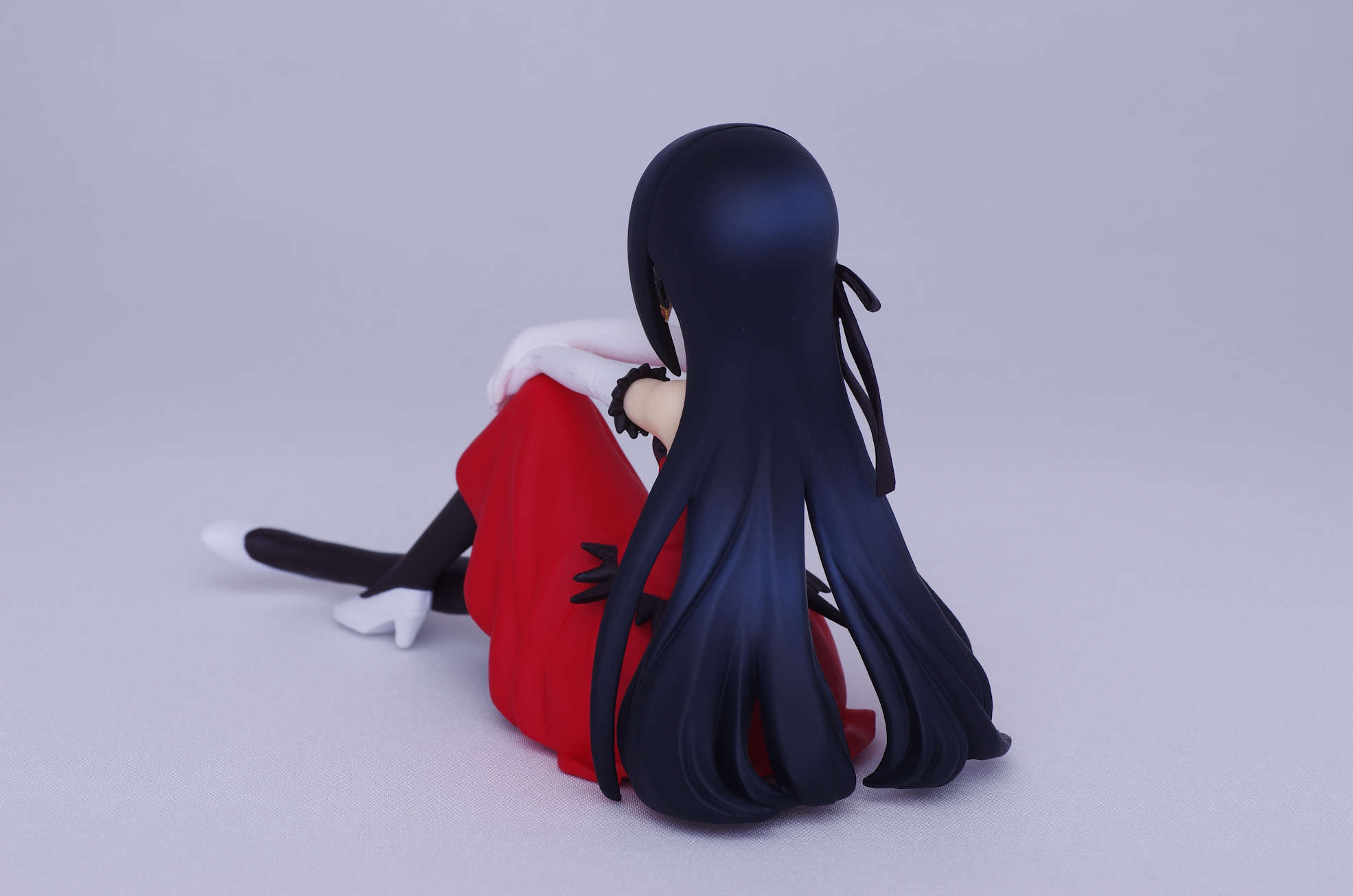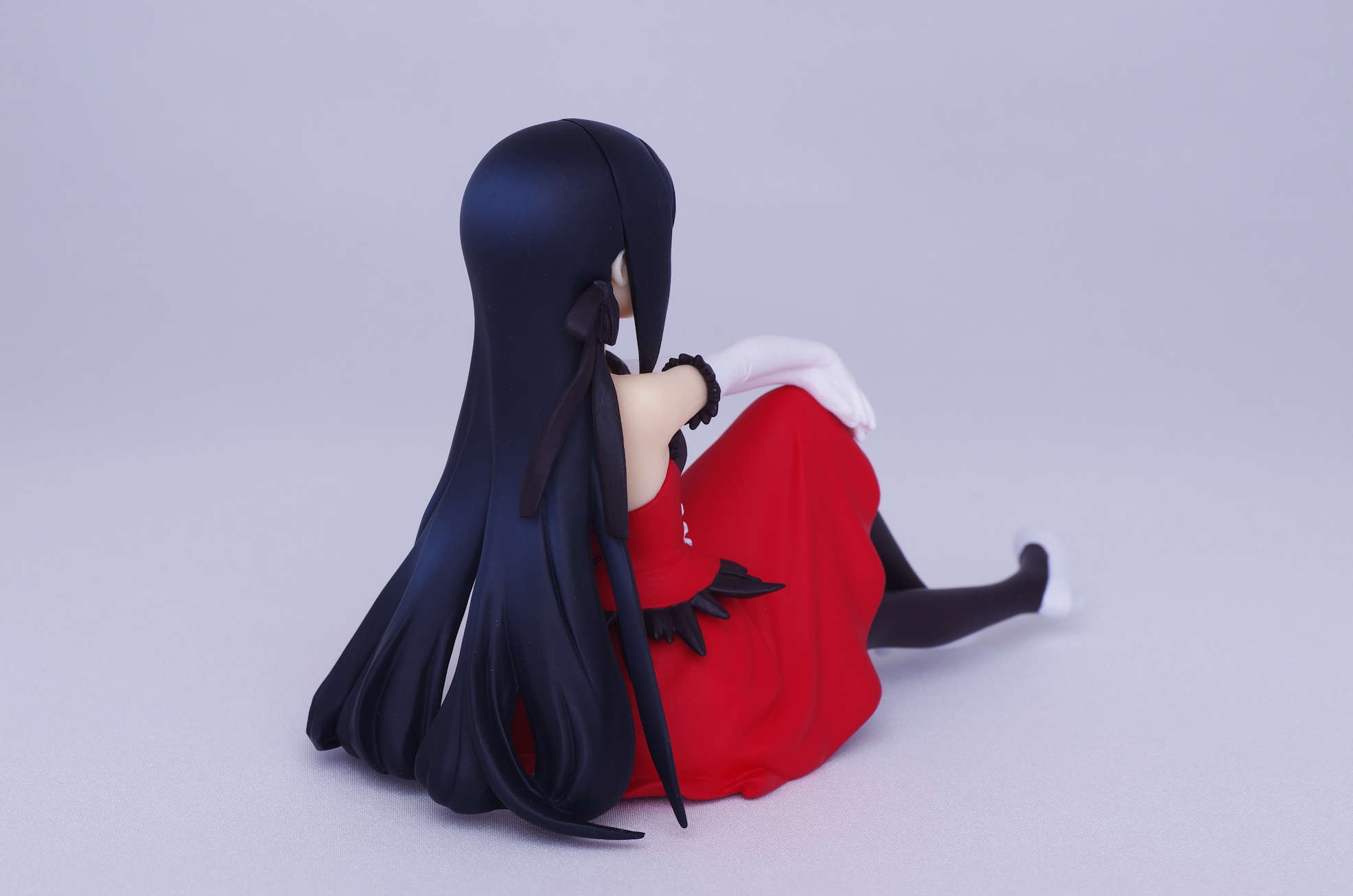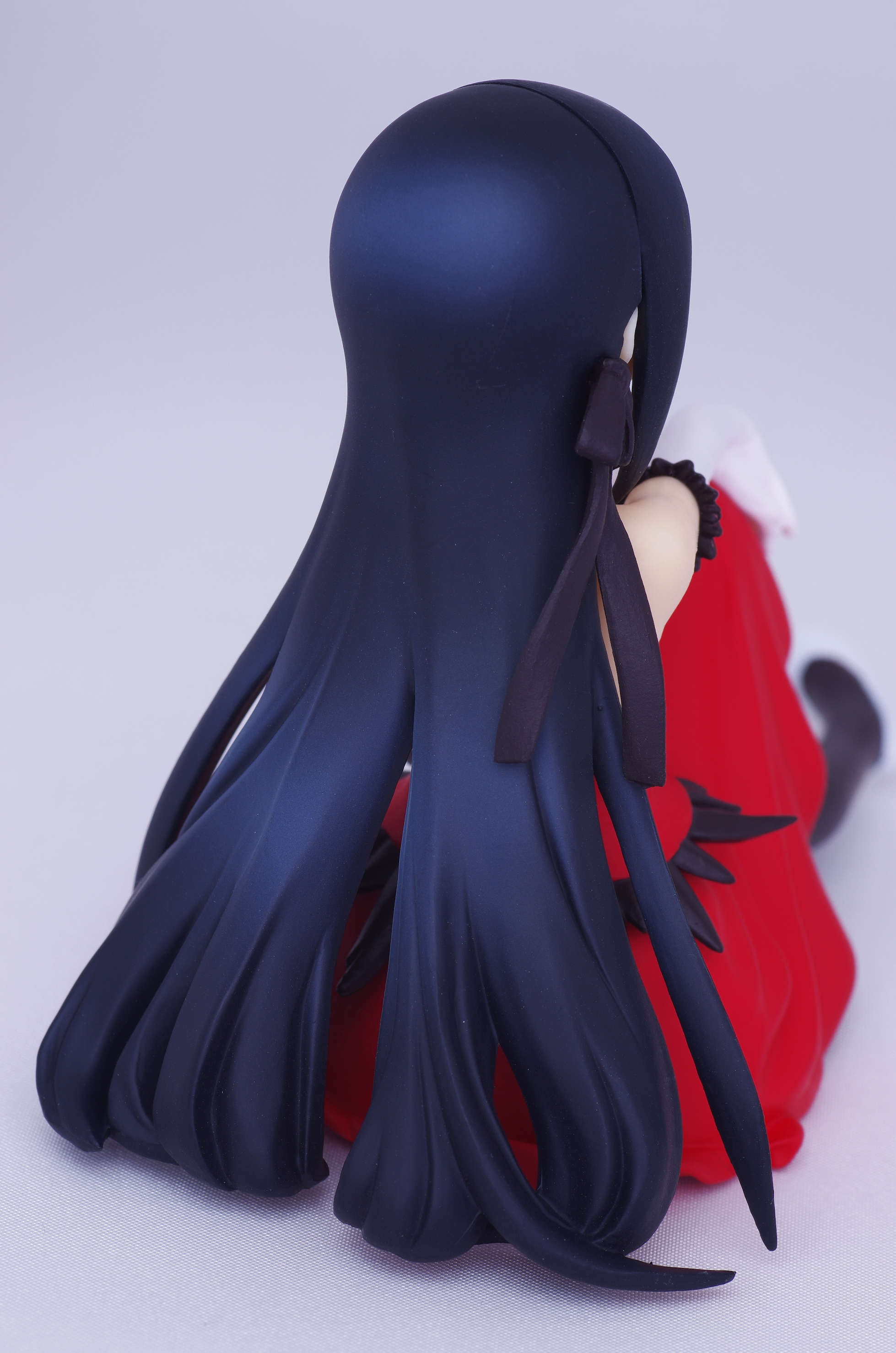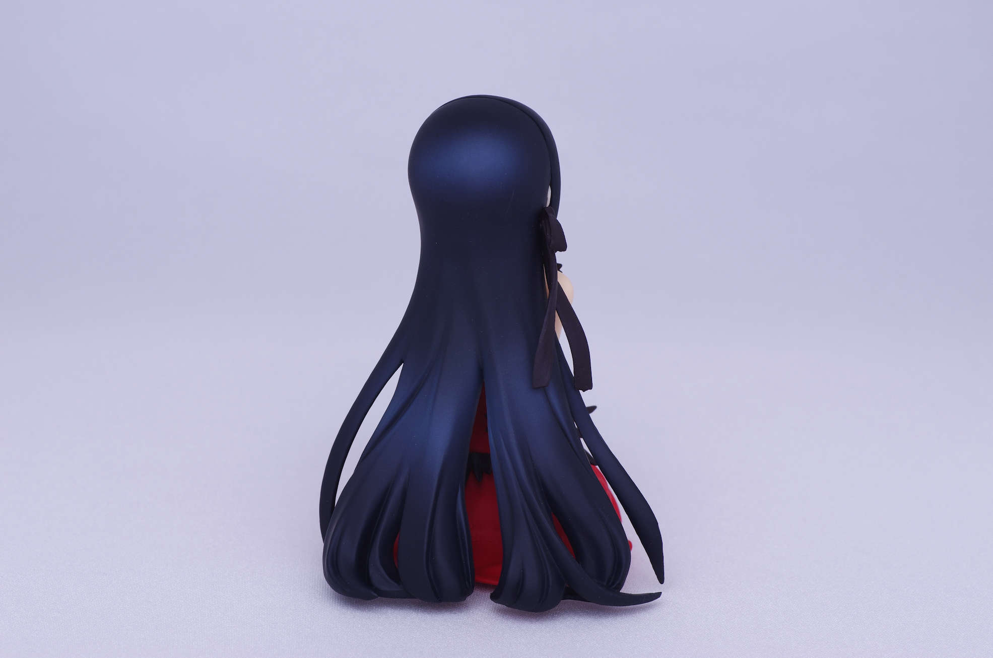 床に垂れるロングの黒髪に黒のリボン
