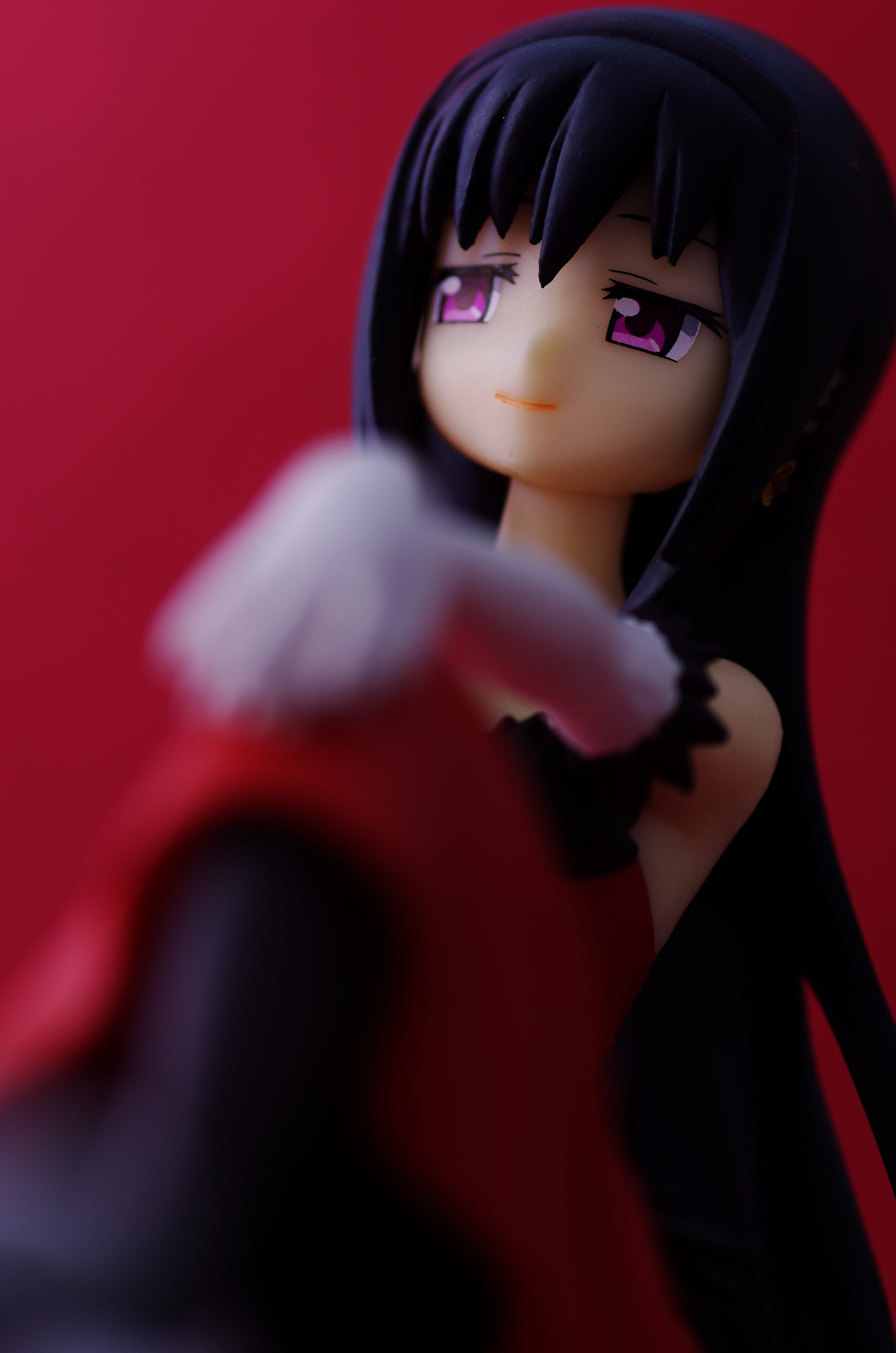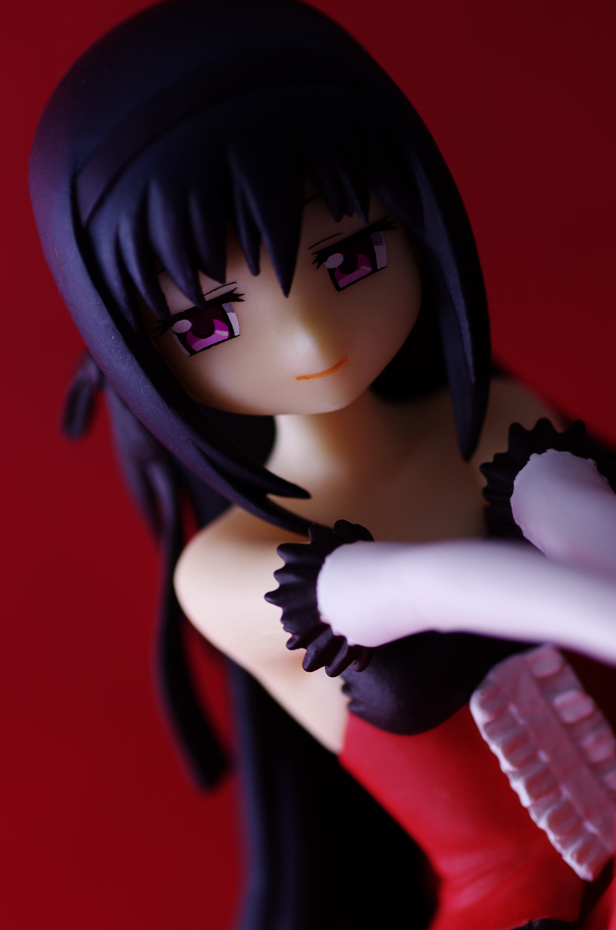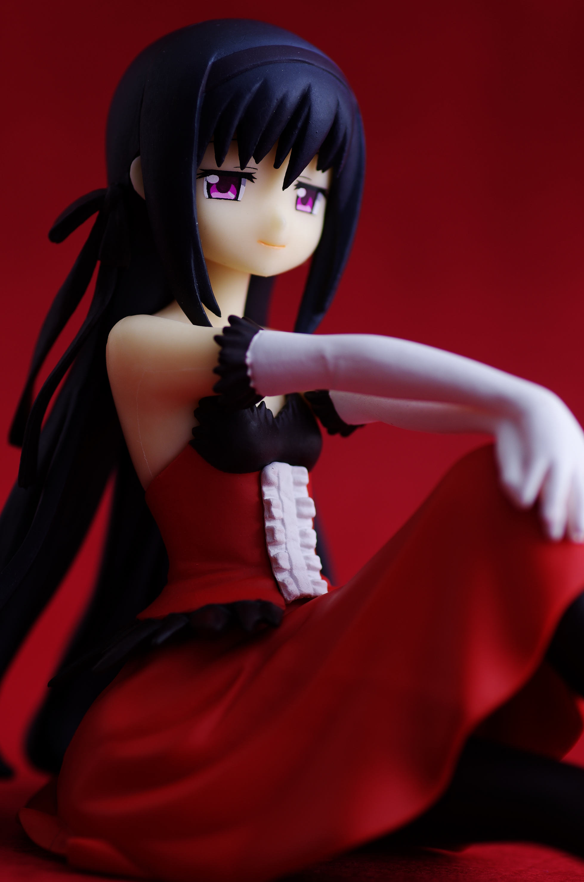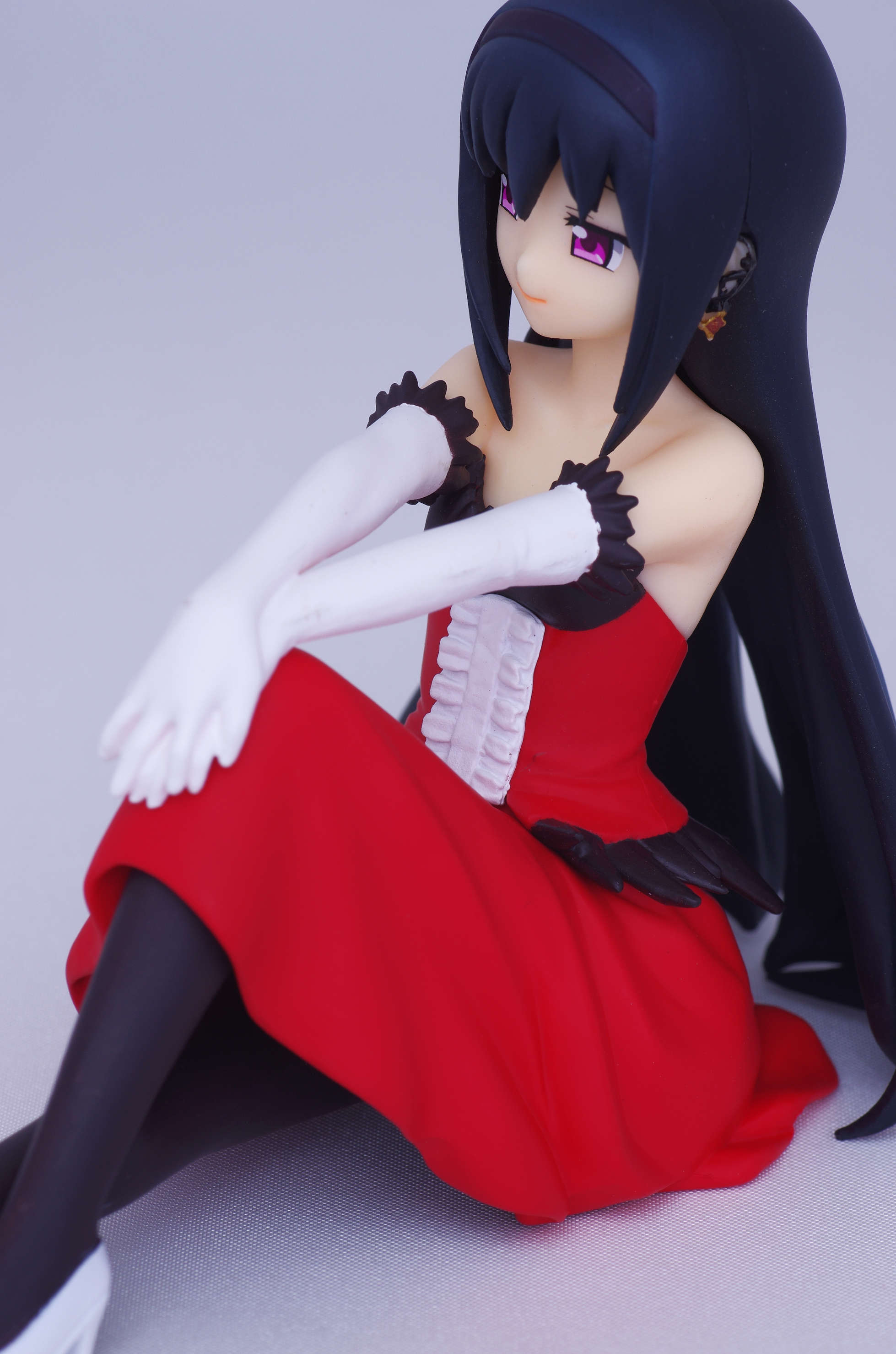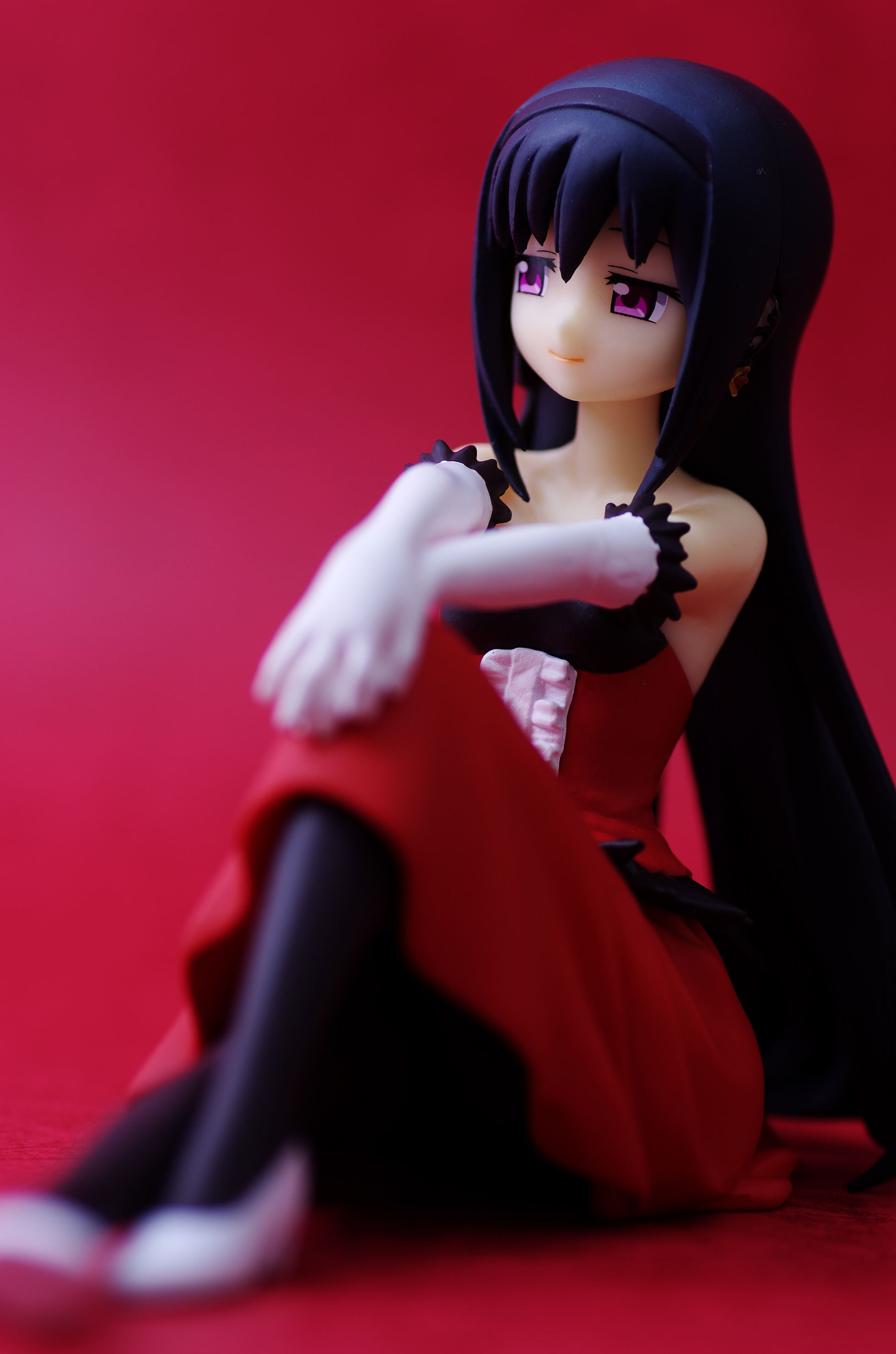 真っ赤なドレス姿でお座りするほむほむ♪こんなカッコしてたかもと思うくらい違和感無しw(手の仕草が良いね)