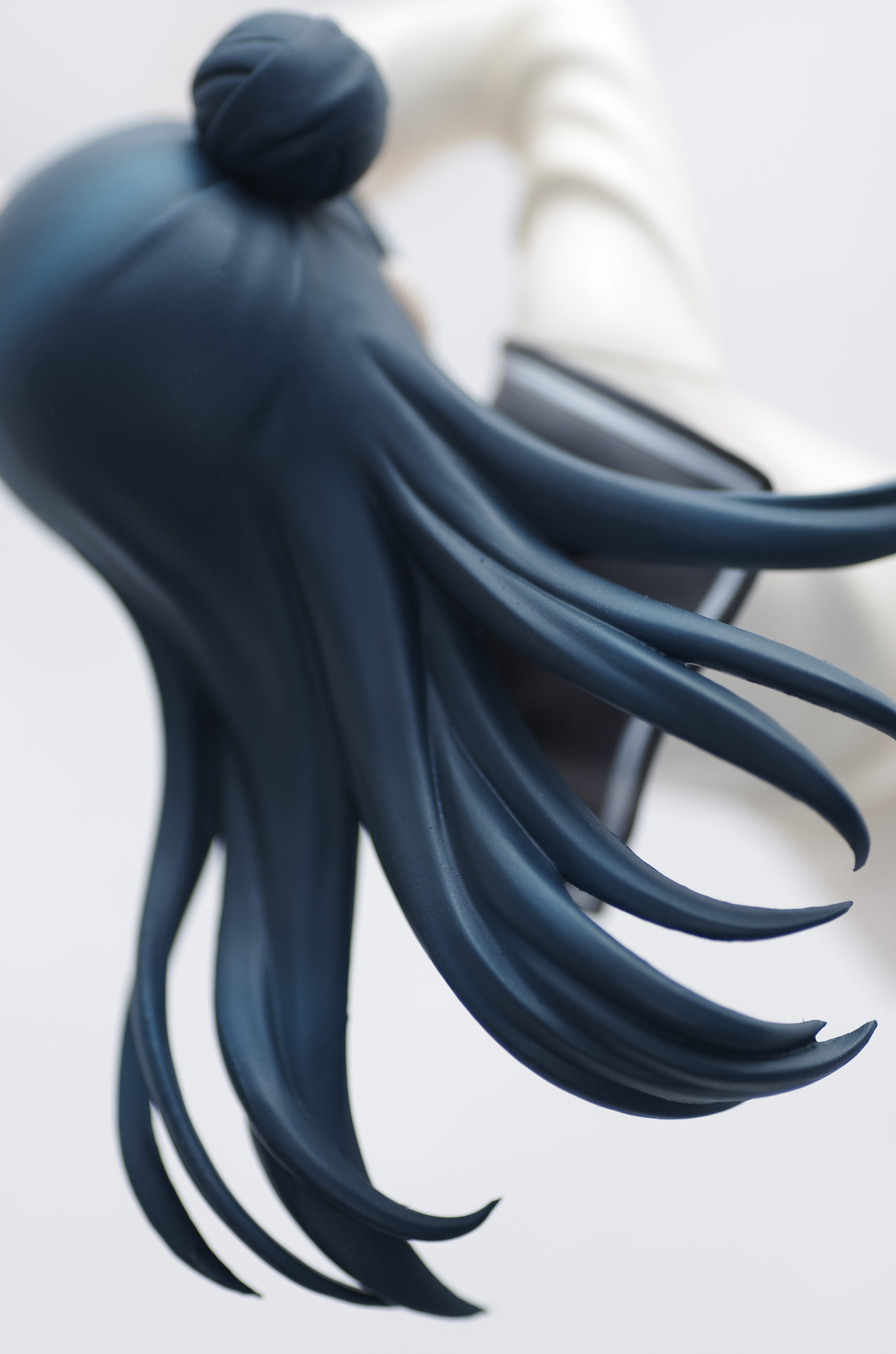 片方をお団子にしたロングの青い髪(グラデーション塗装もしっかり)