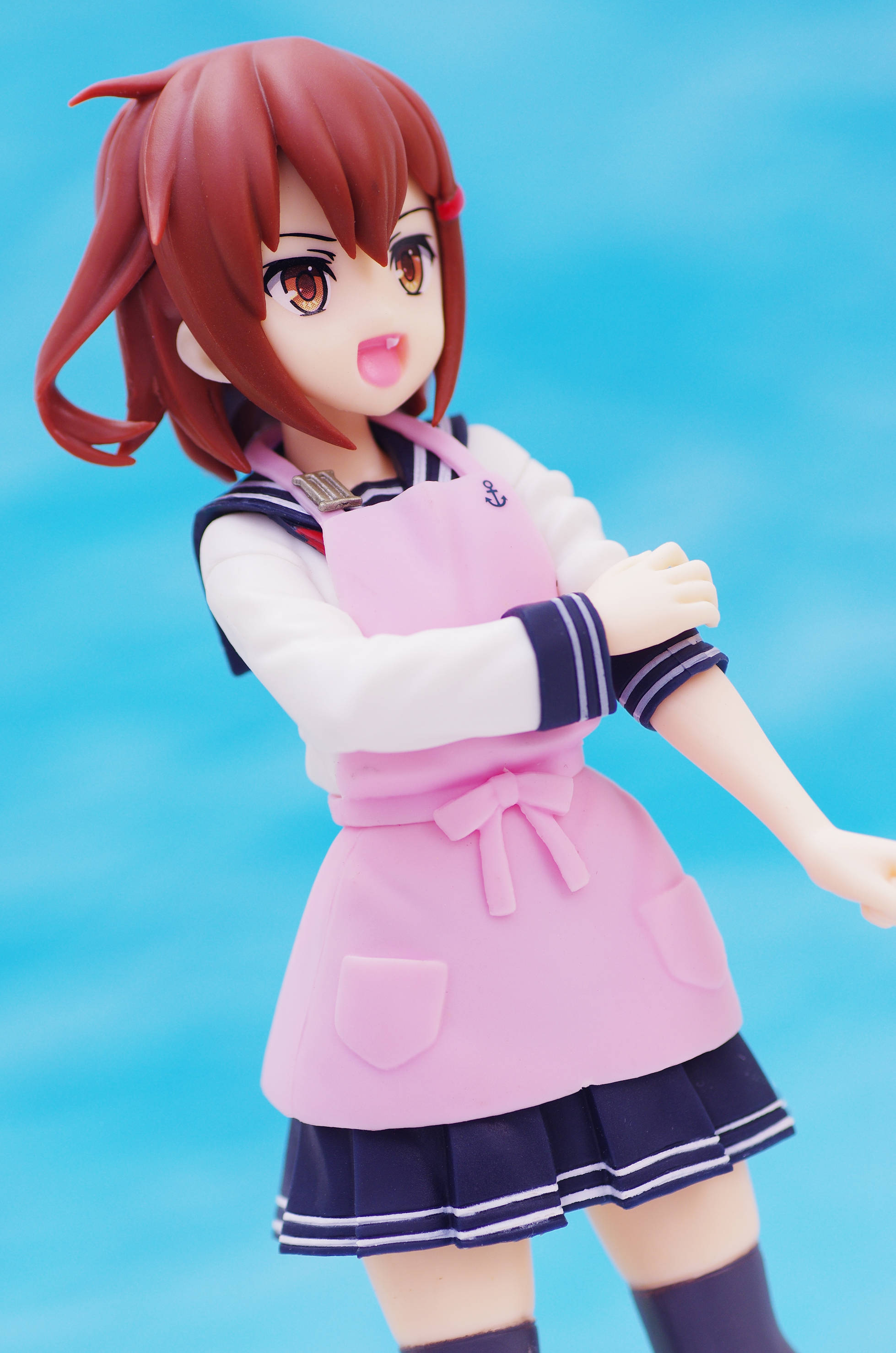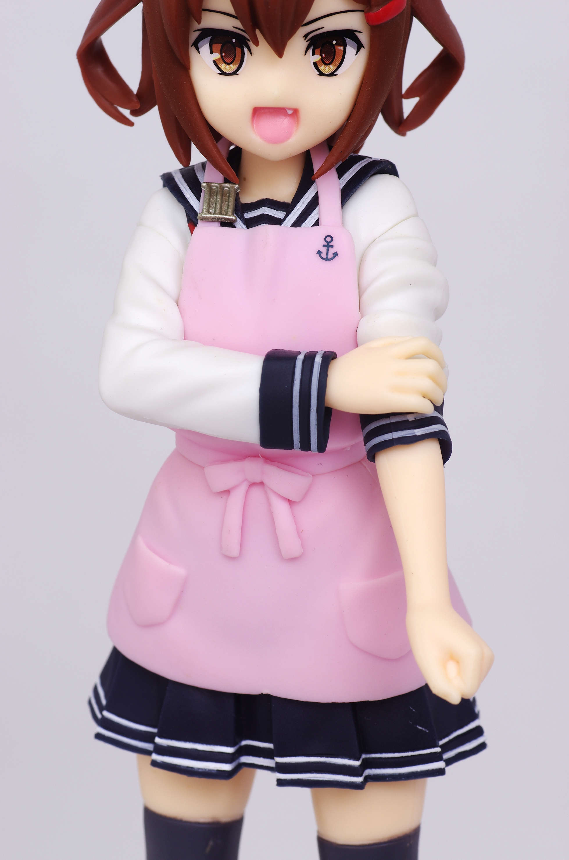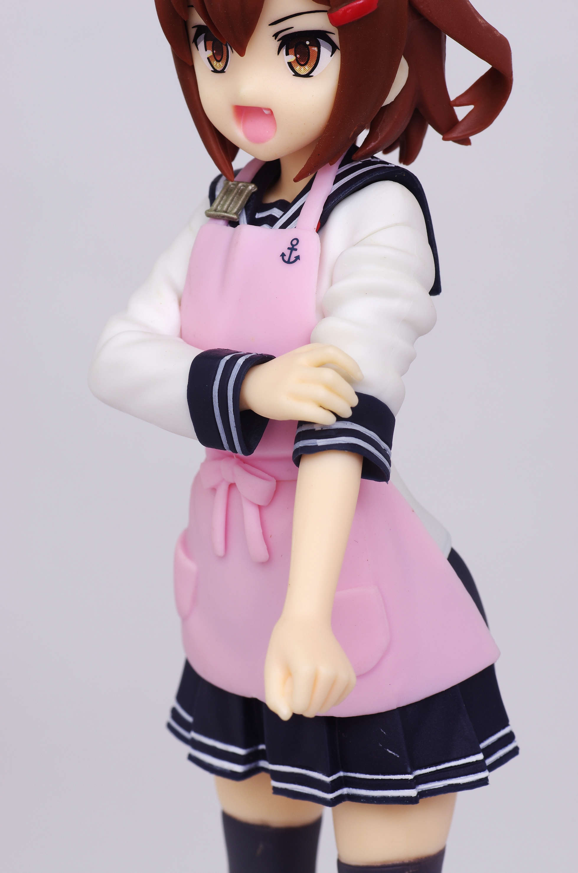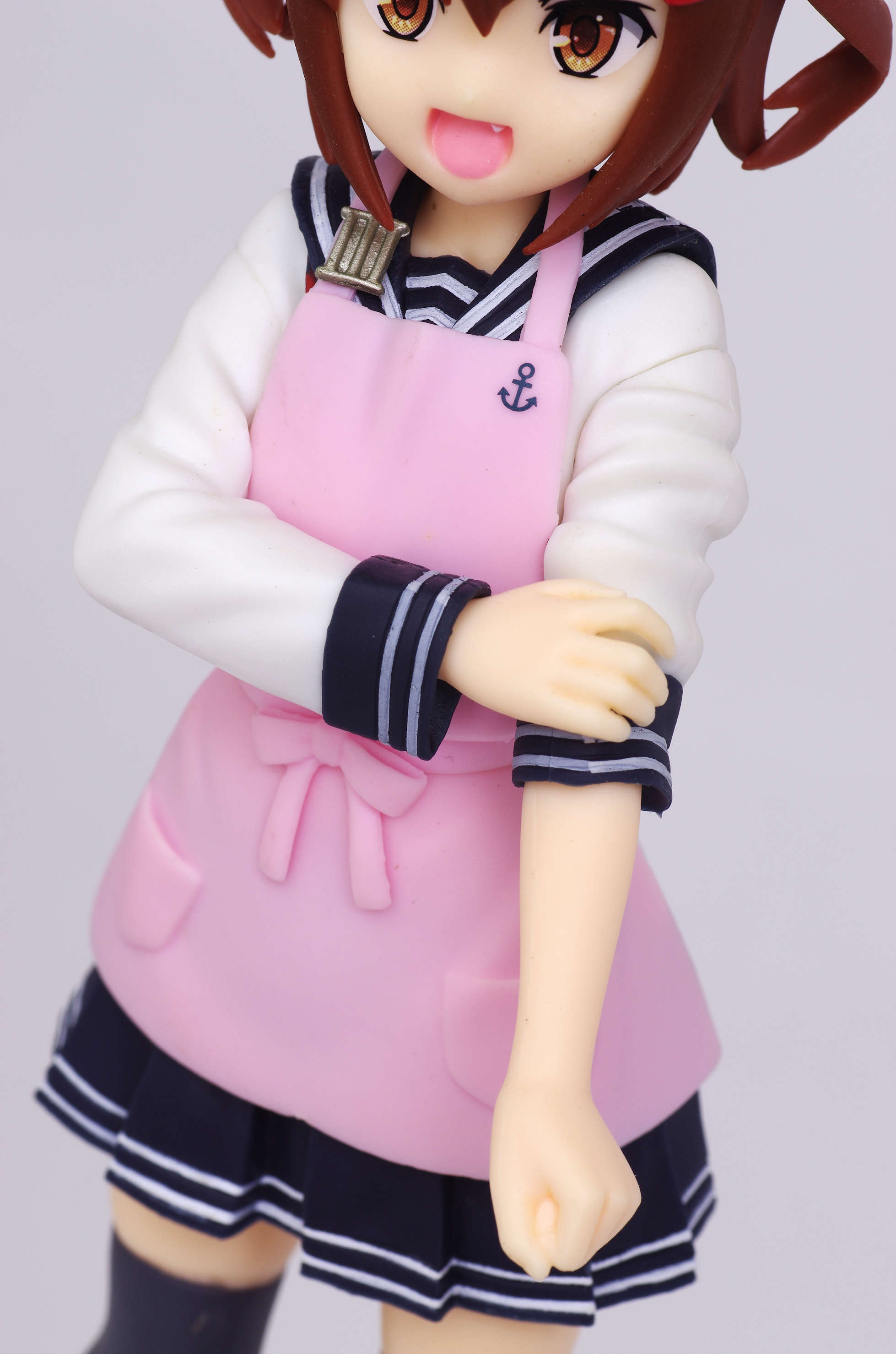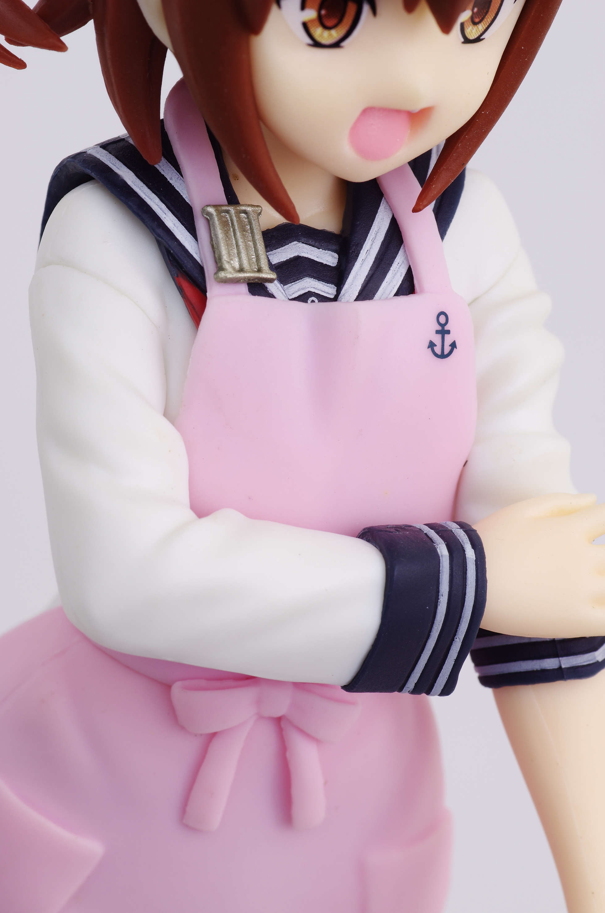 セーラー服の上からかけたピンク色のエプロン(肩口には特Ⅲ型のバッジ)