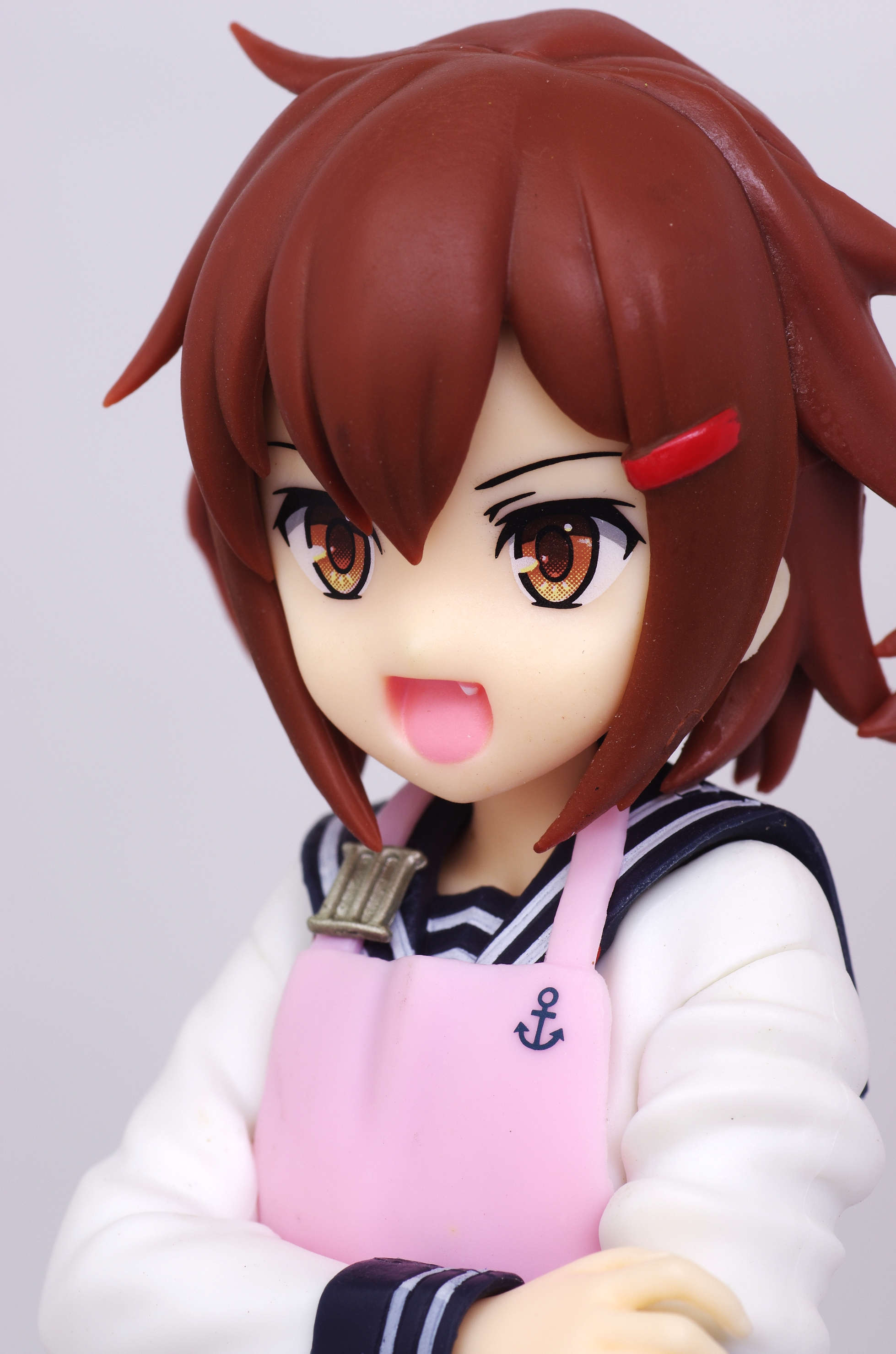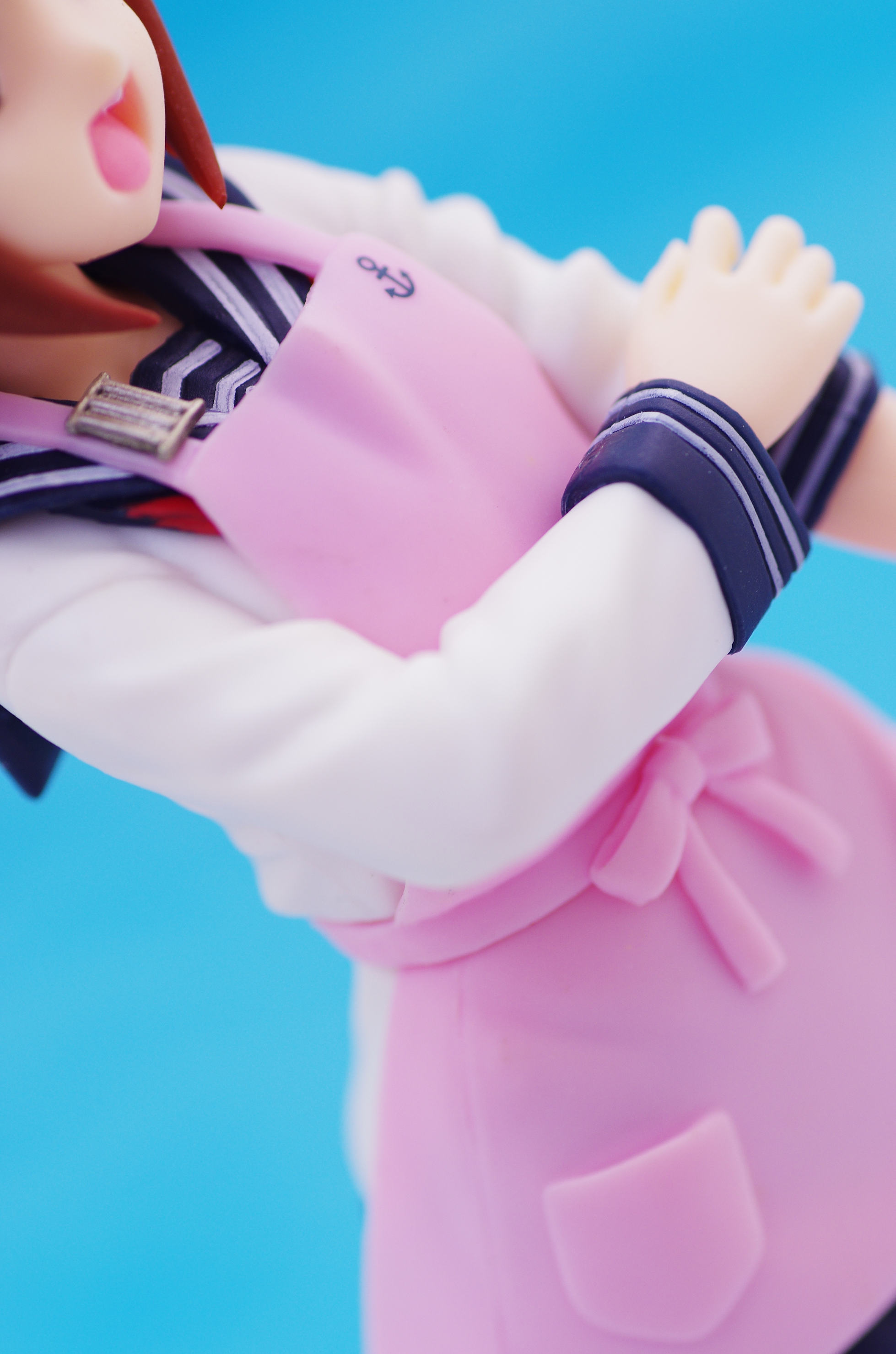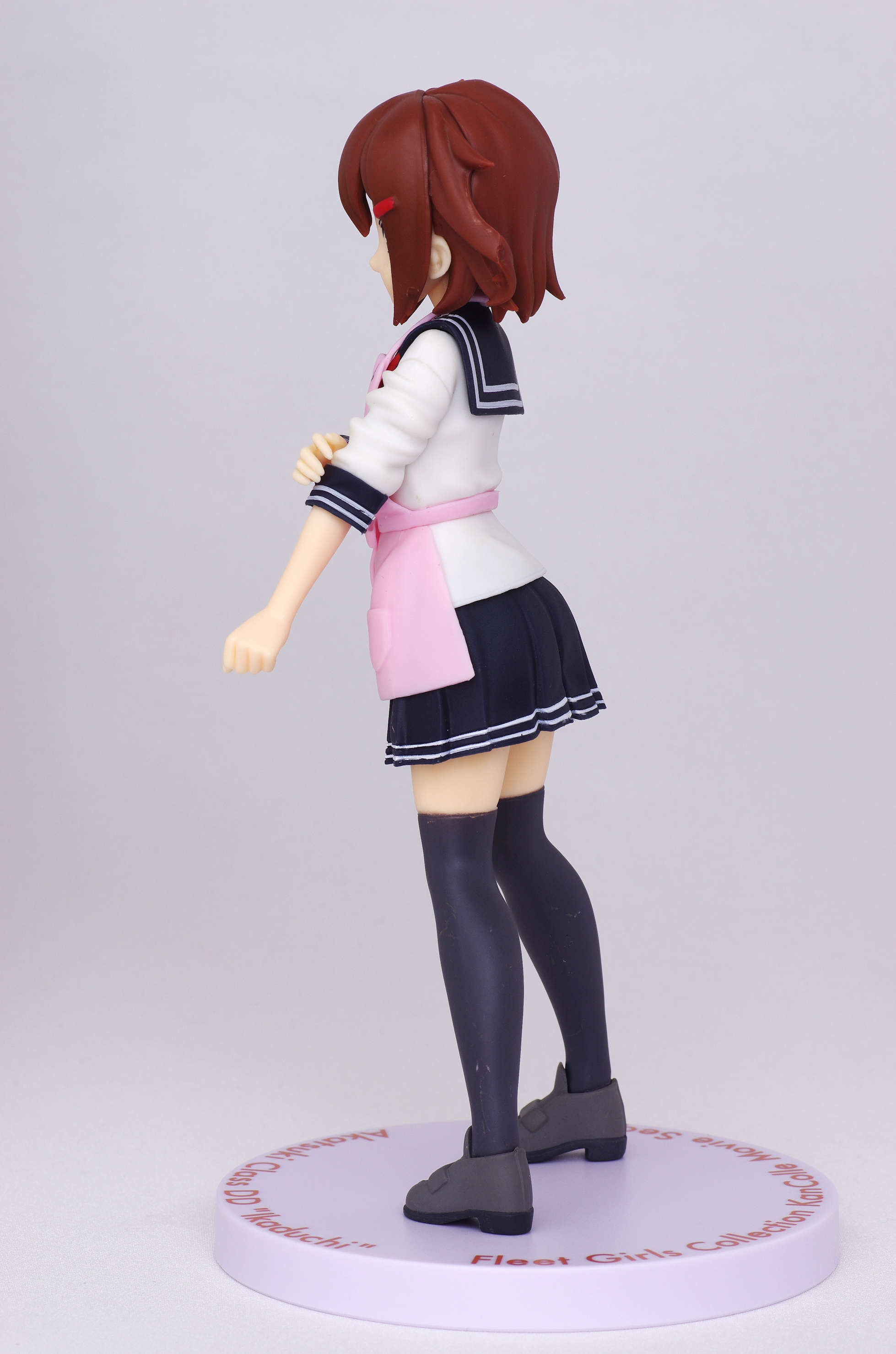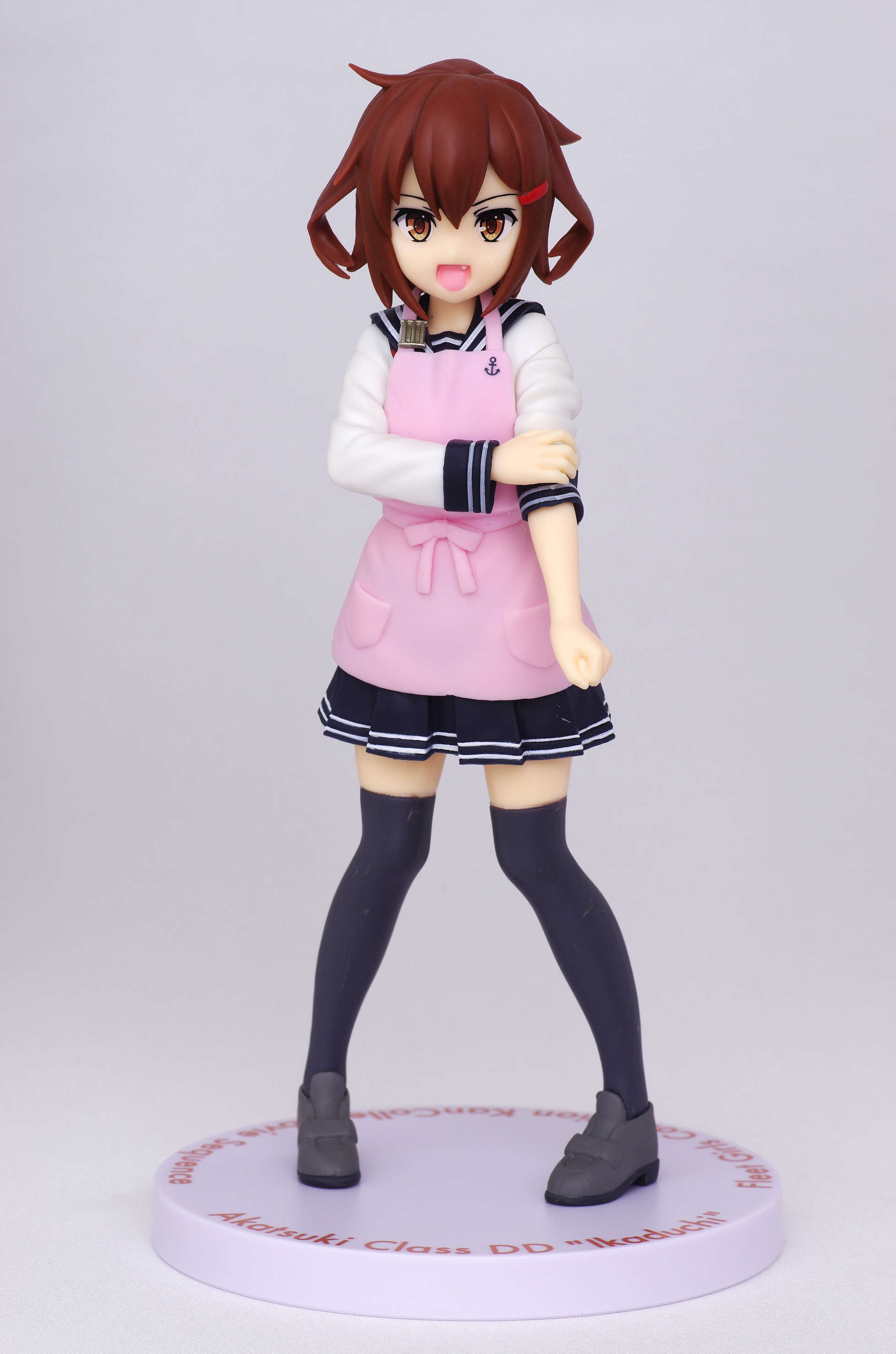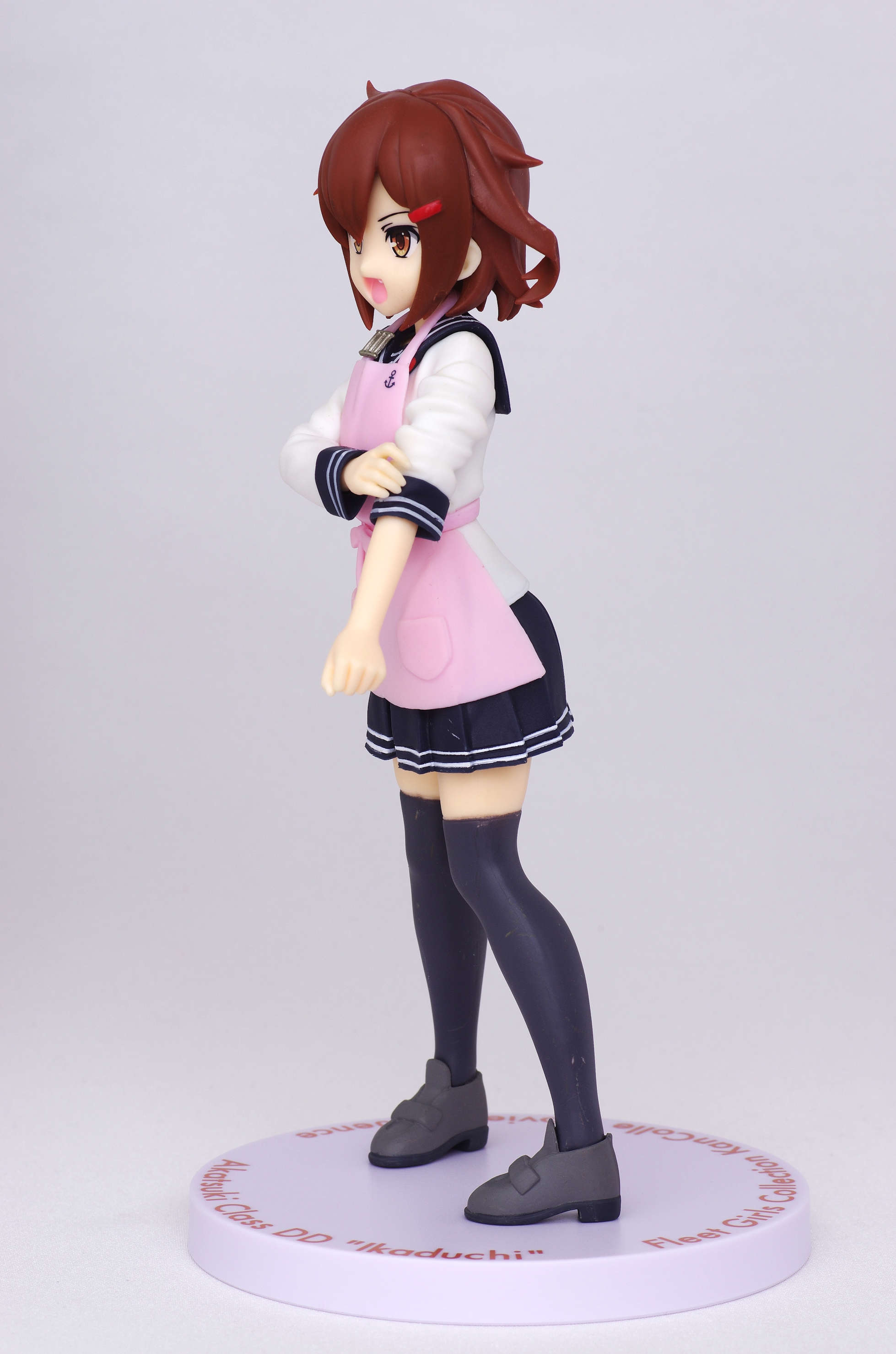 セーラー服の上からかけたピンク色のエプロン(肩口には特Ⅲ型のバッジ)