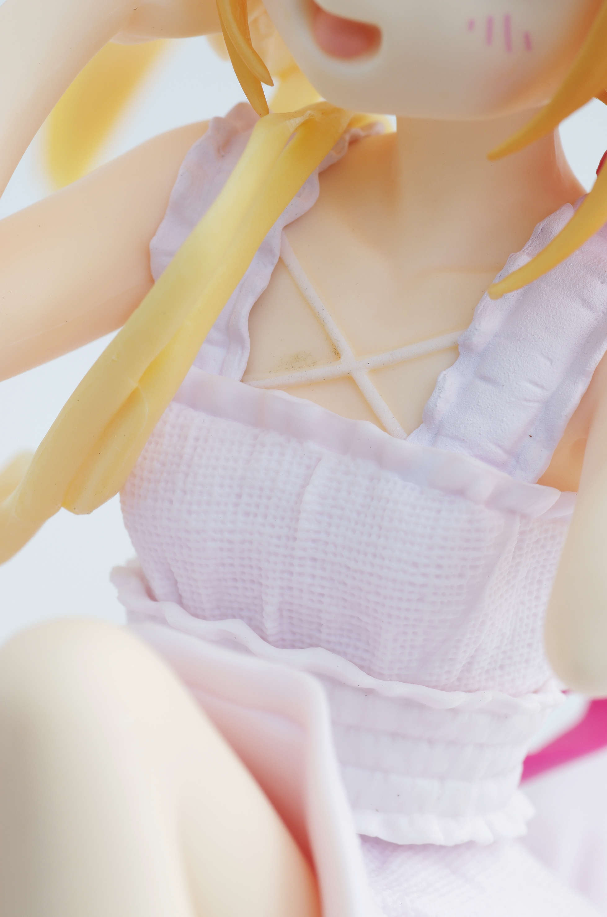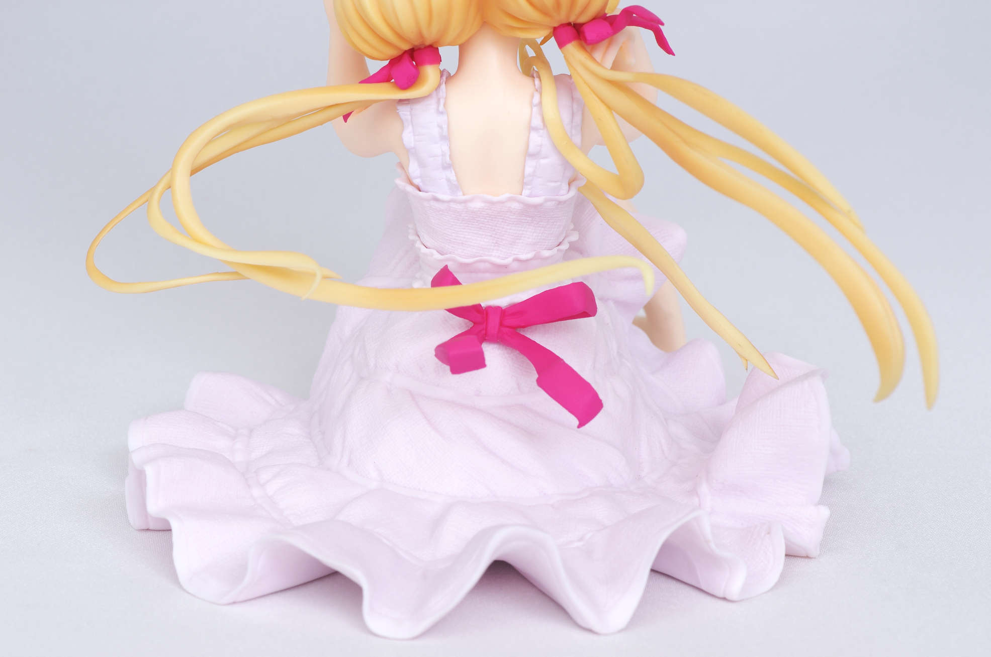 薄いピンクがかった白のワンピース(布の質感がすごくよく出てます)