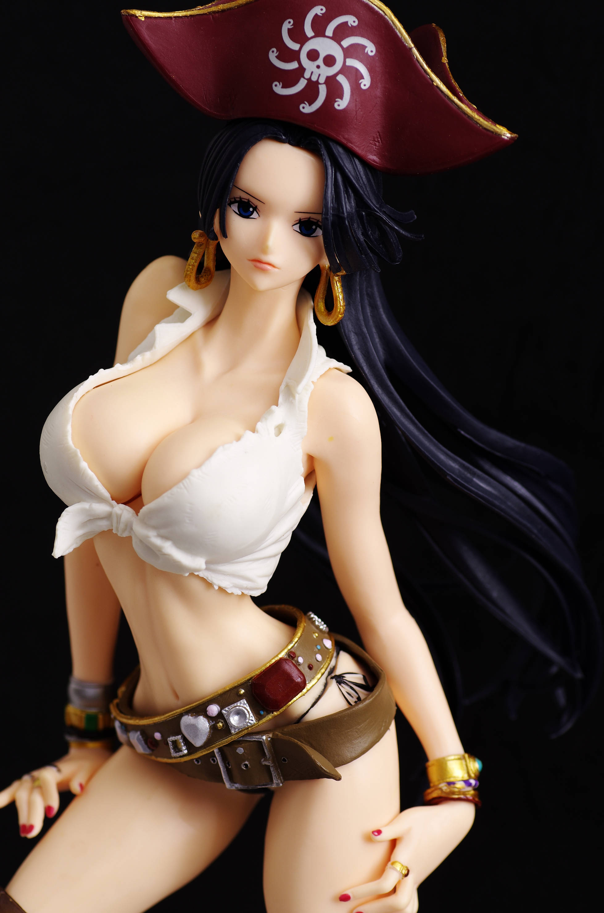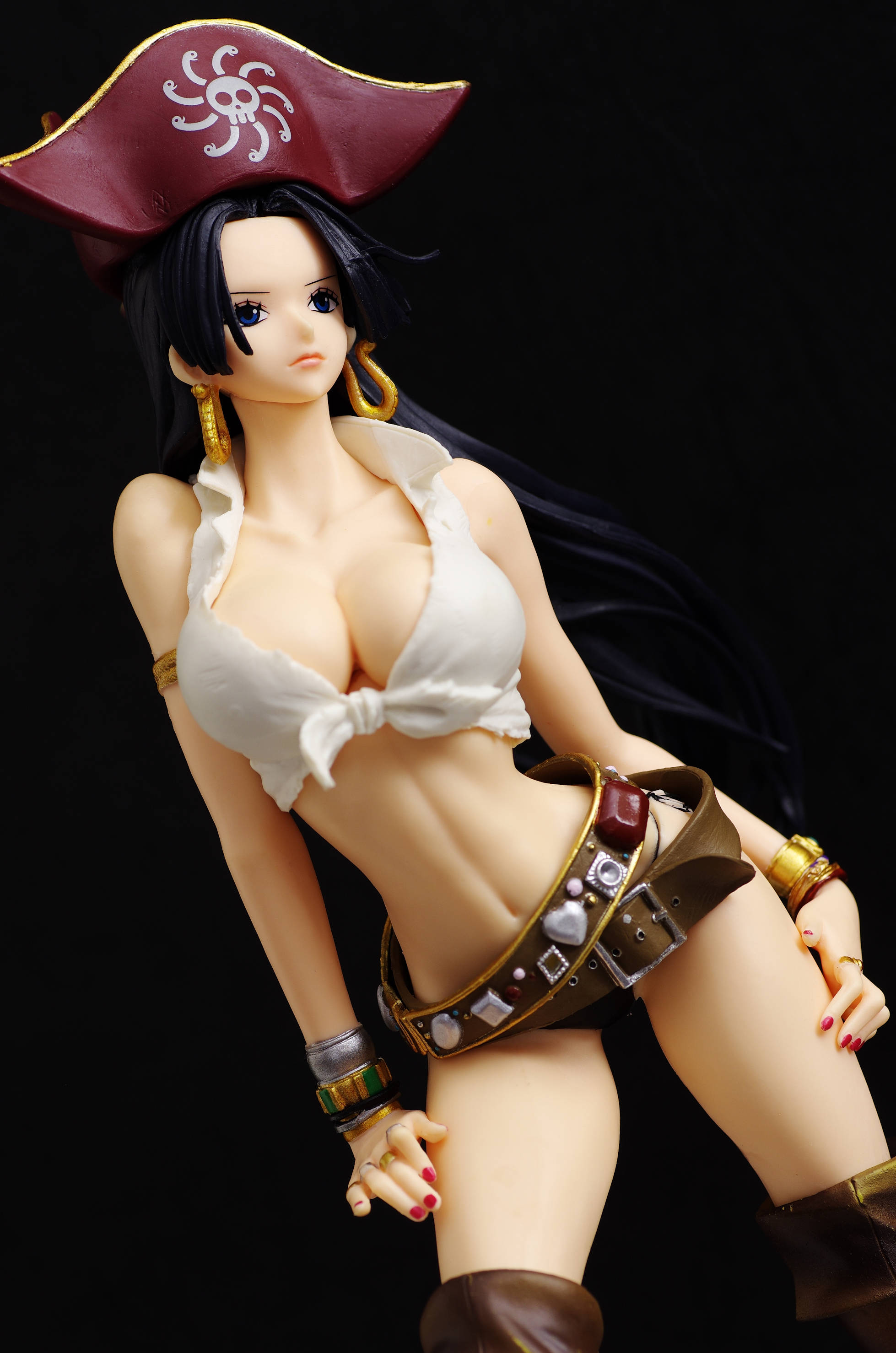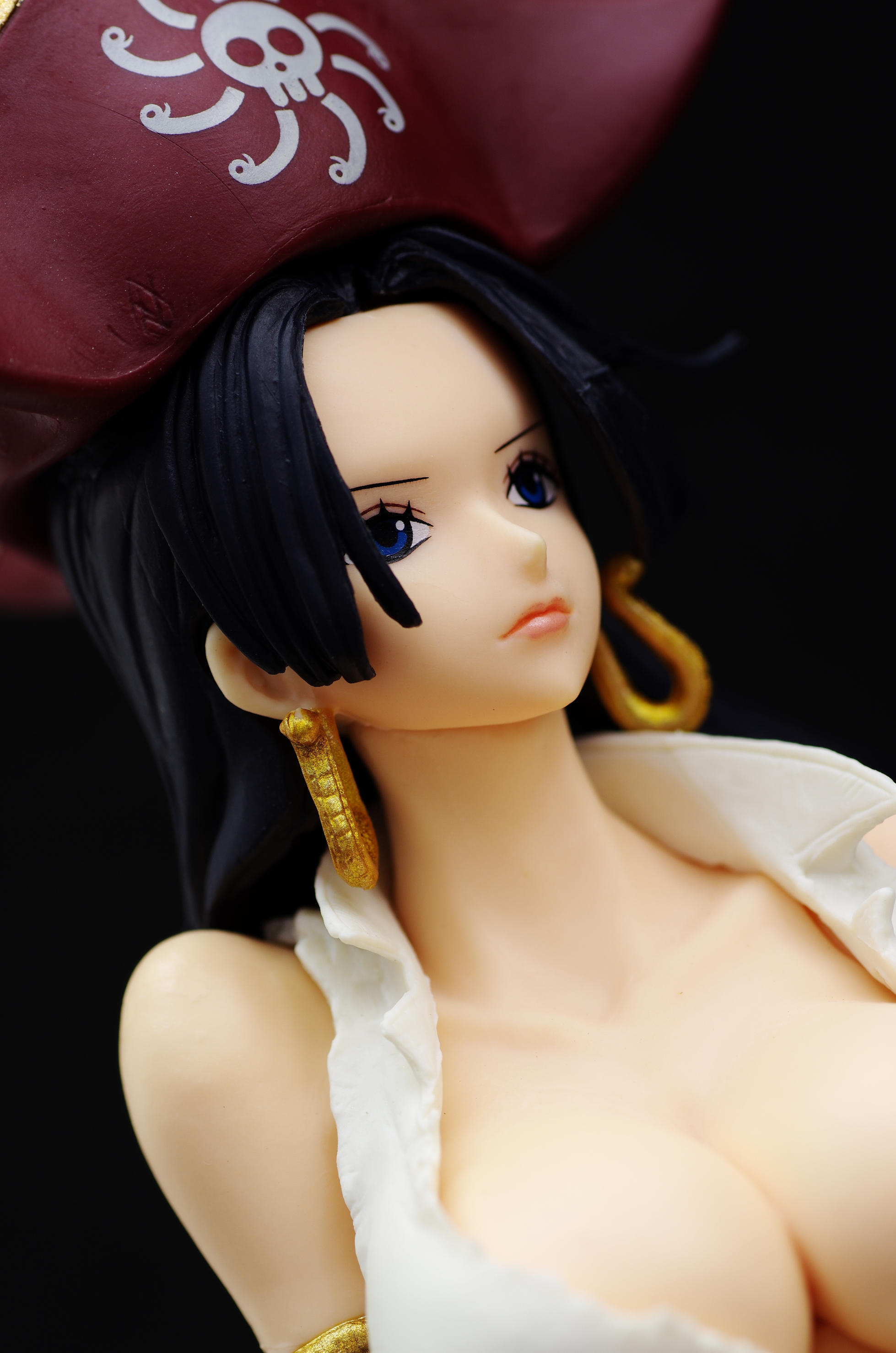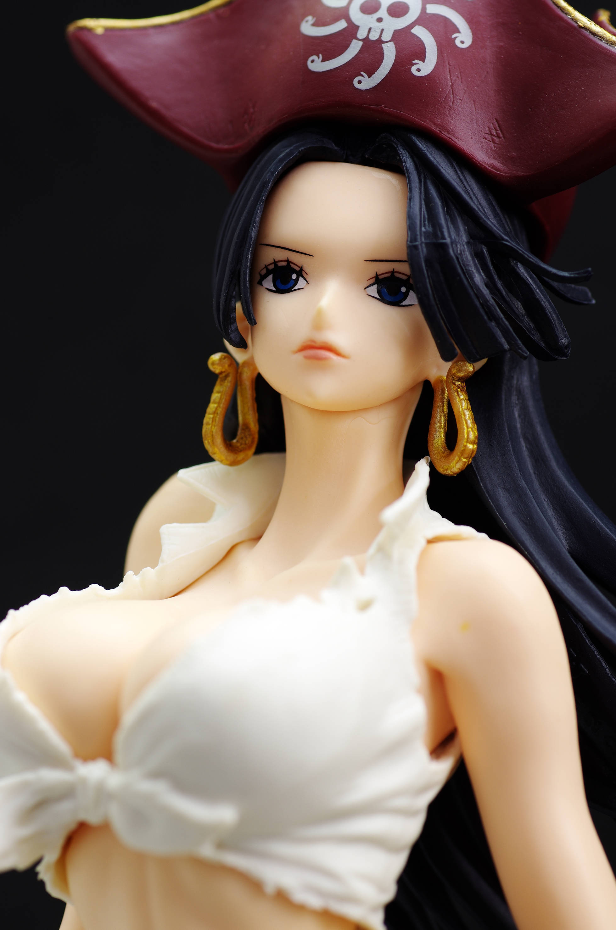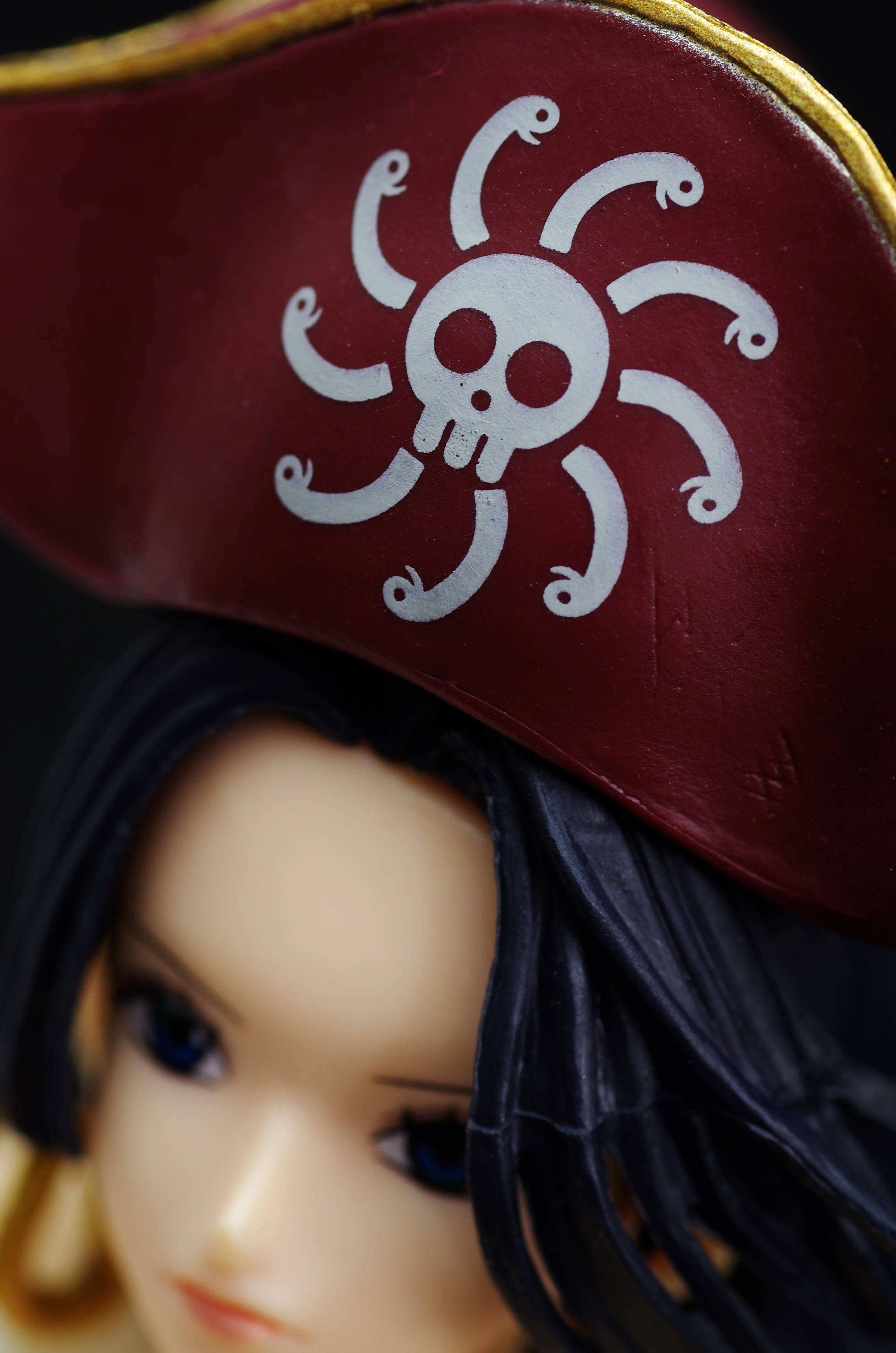 なびくロングの黒髪に海賊帽(帽子には九蛇海賊団のマーク)