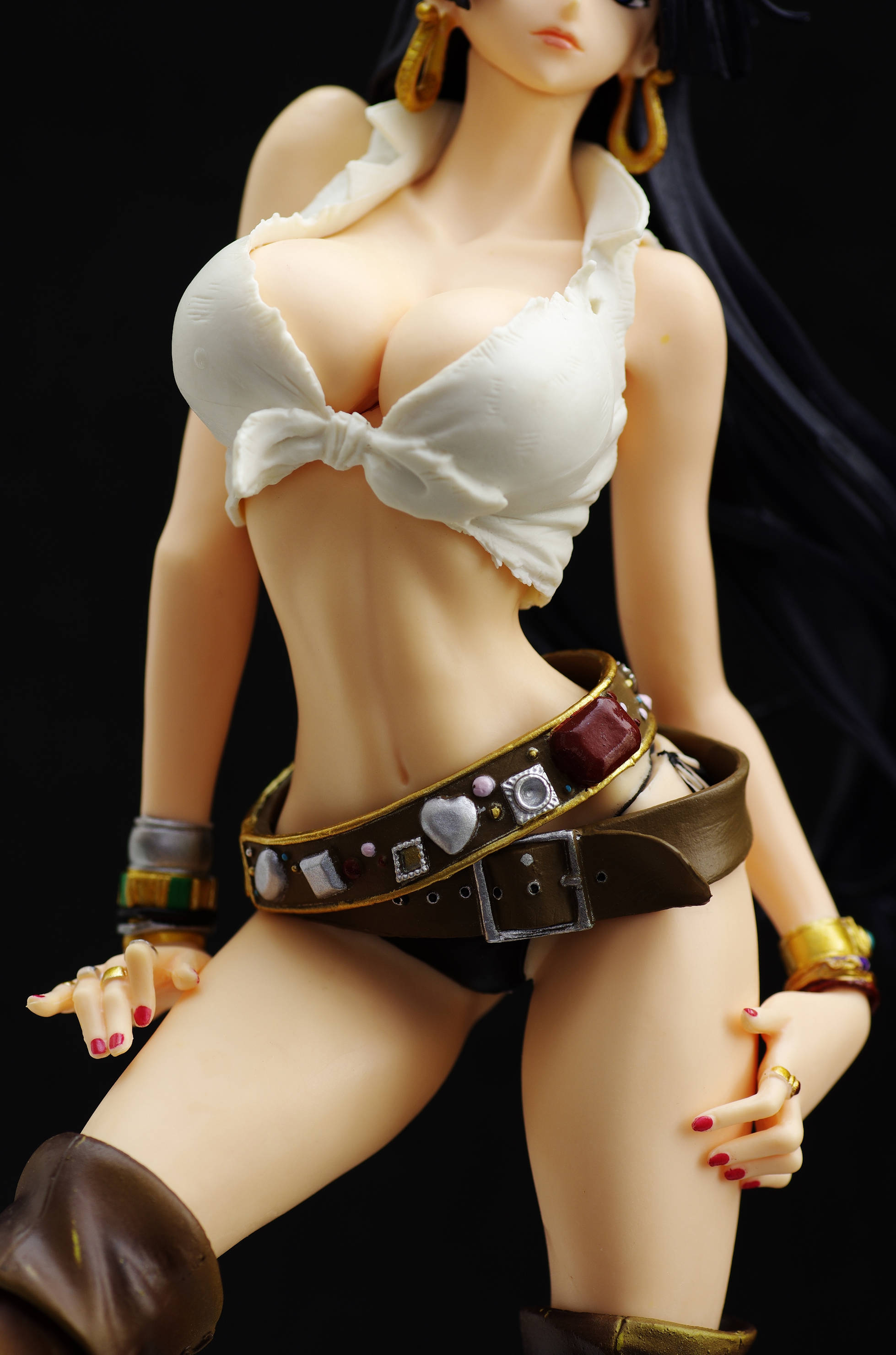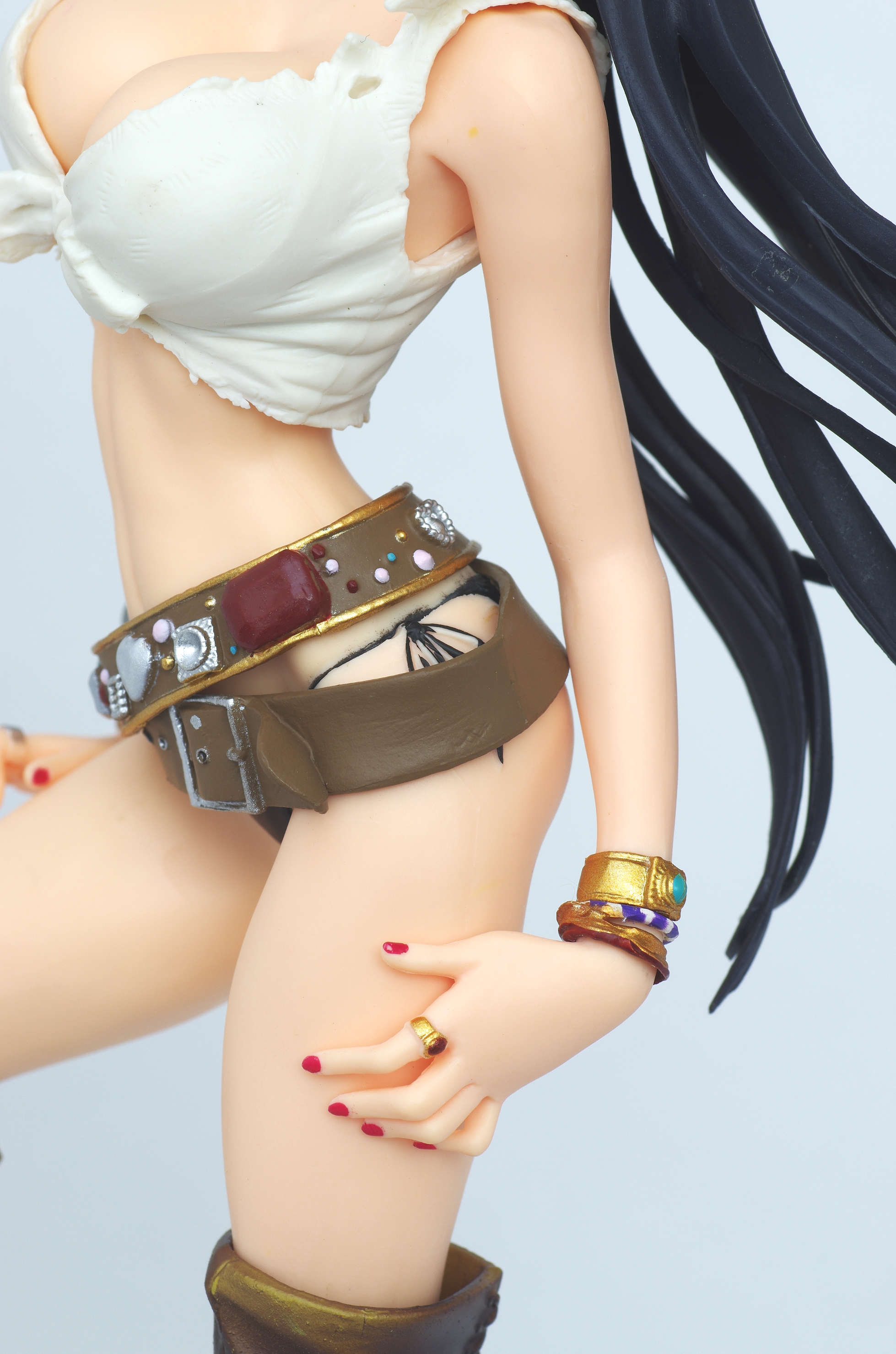 太もも当てた両手には指輪やリングやログポースなどがジャラジャラ♪(指まで表情がありネイル塗装もしっかり)
