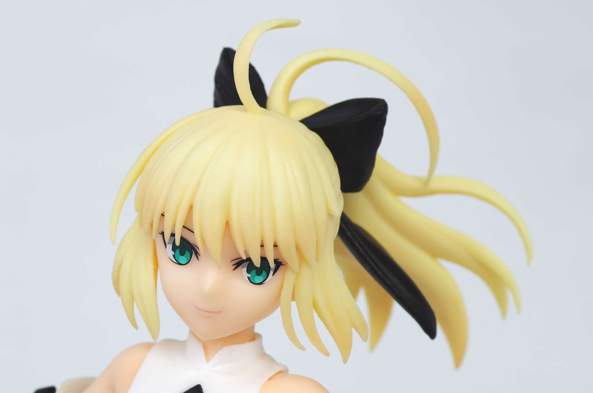 アホ毛も立派な金髪のポニーテールに黒いリボン(かるくグラデーション塗装も)