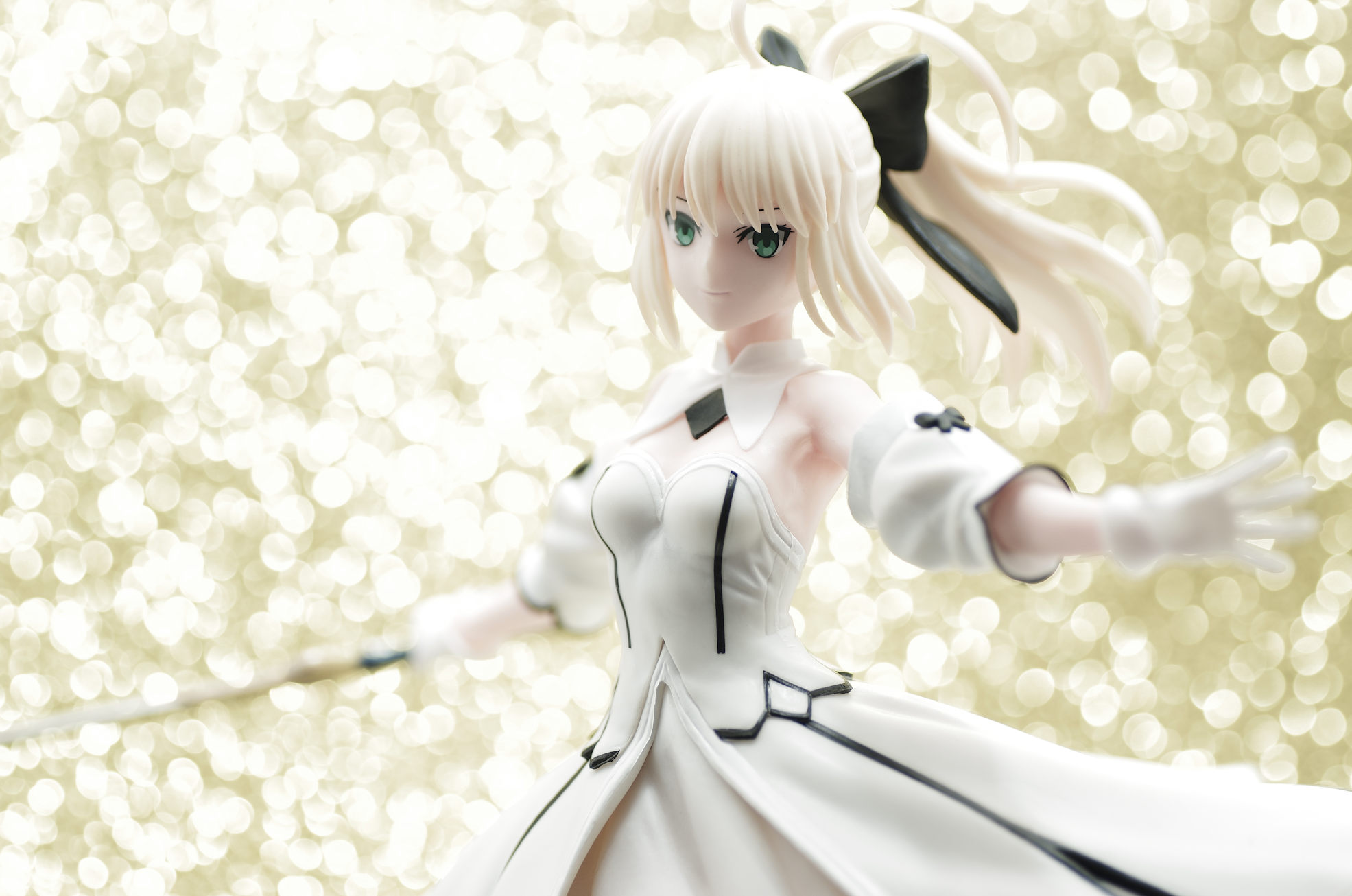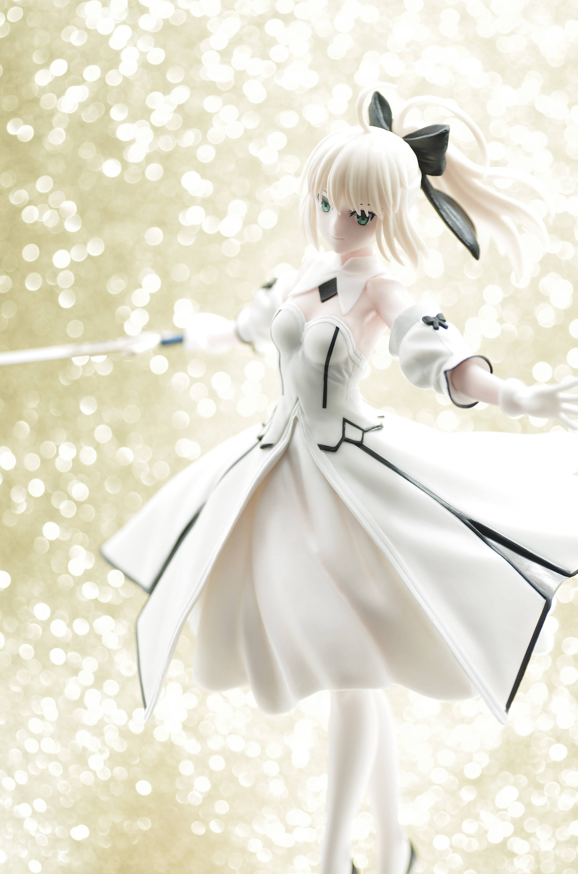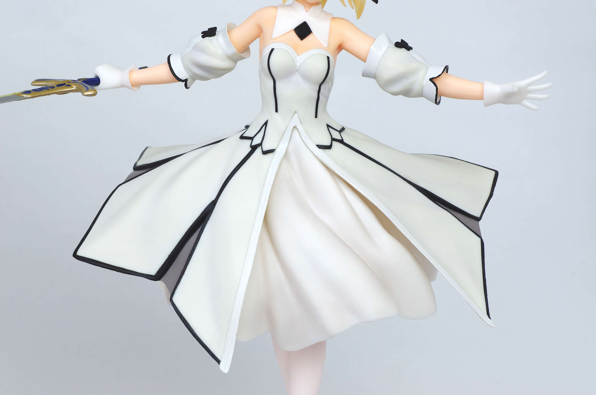 ドレス姿で剣を構える白セイバーさん♪両手を横に伸ばしてるので飾るスペースは取りそうw(出来はまずまず♪)