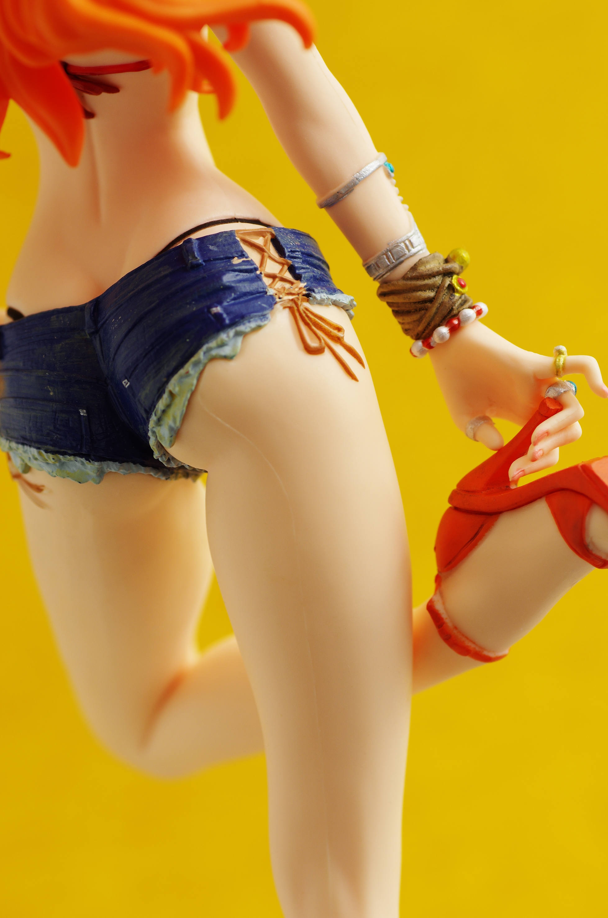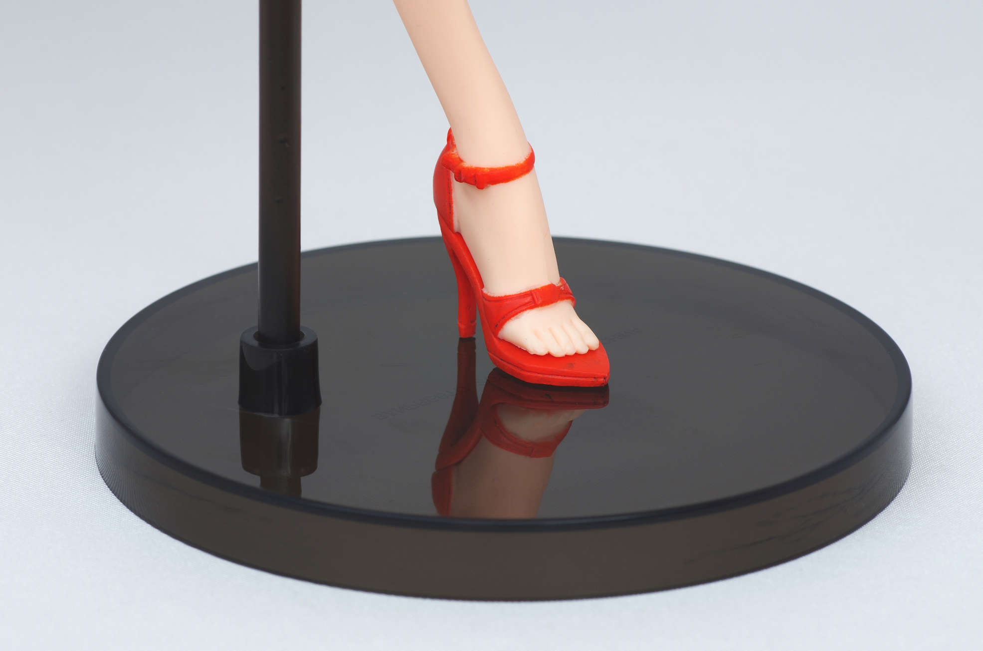 そして足元のオレンジ色のハイヒールに台座