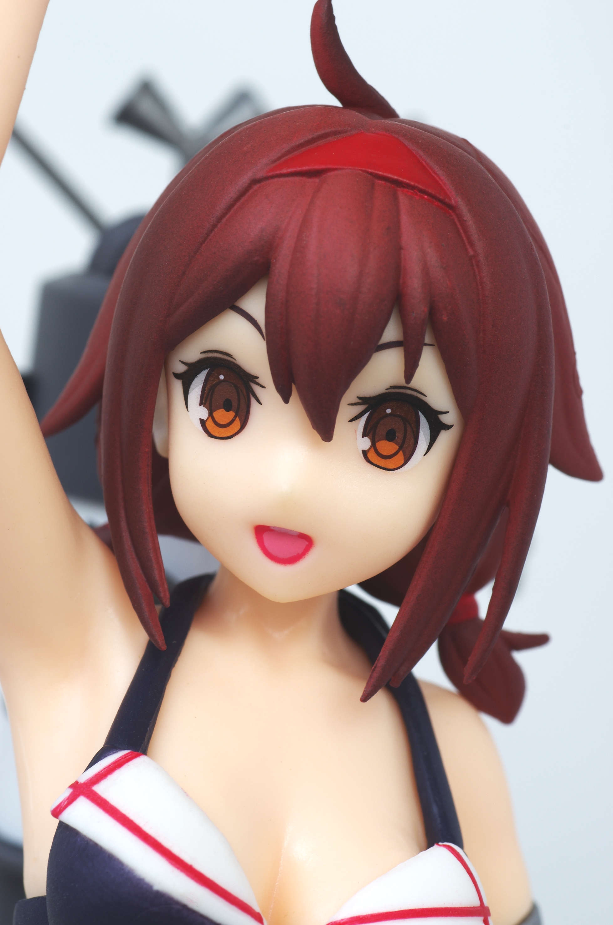 グラデーション塗装もされた赤茶色の髪(赤いカチューシャにアホ毛がピョン)