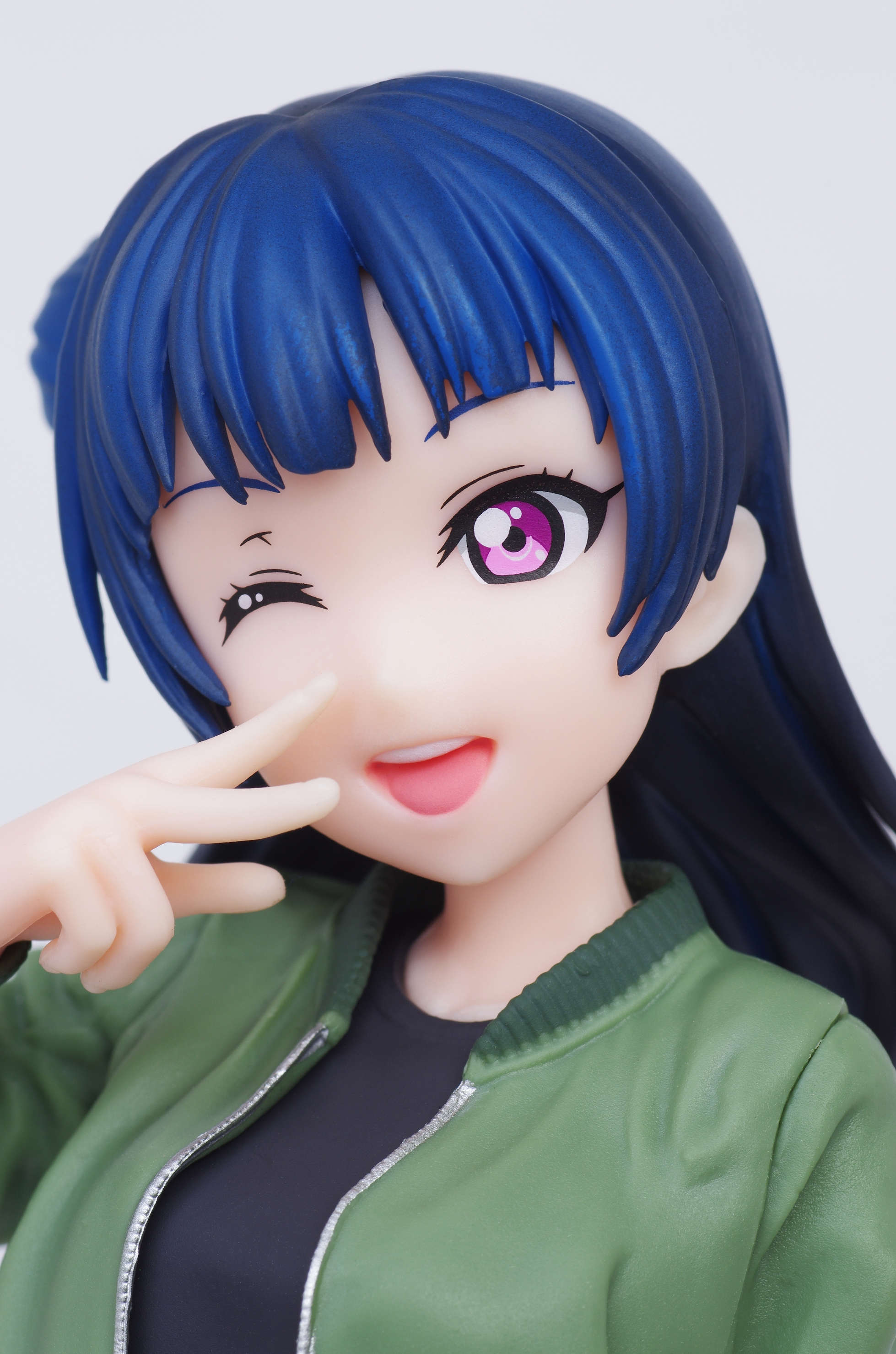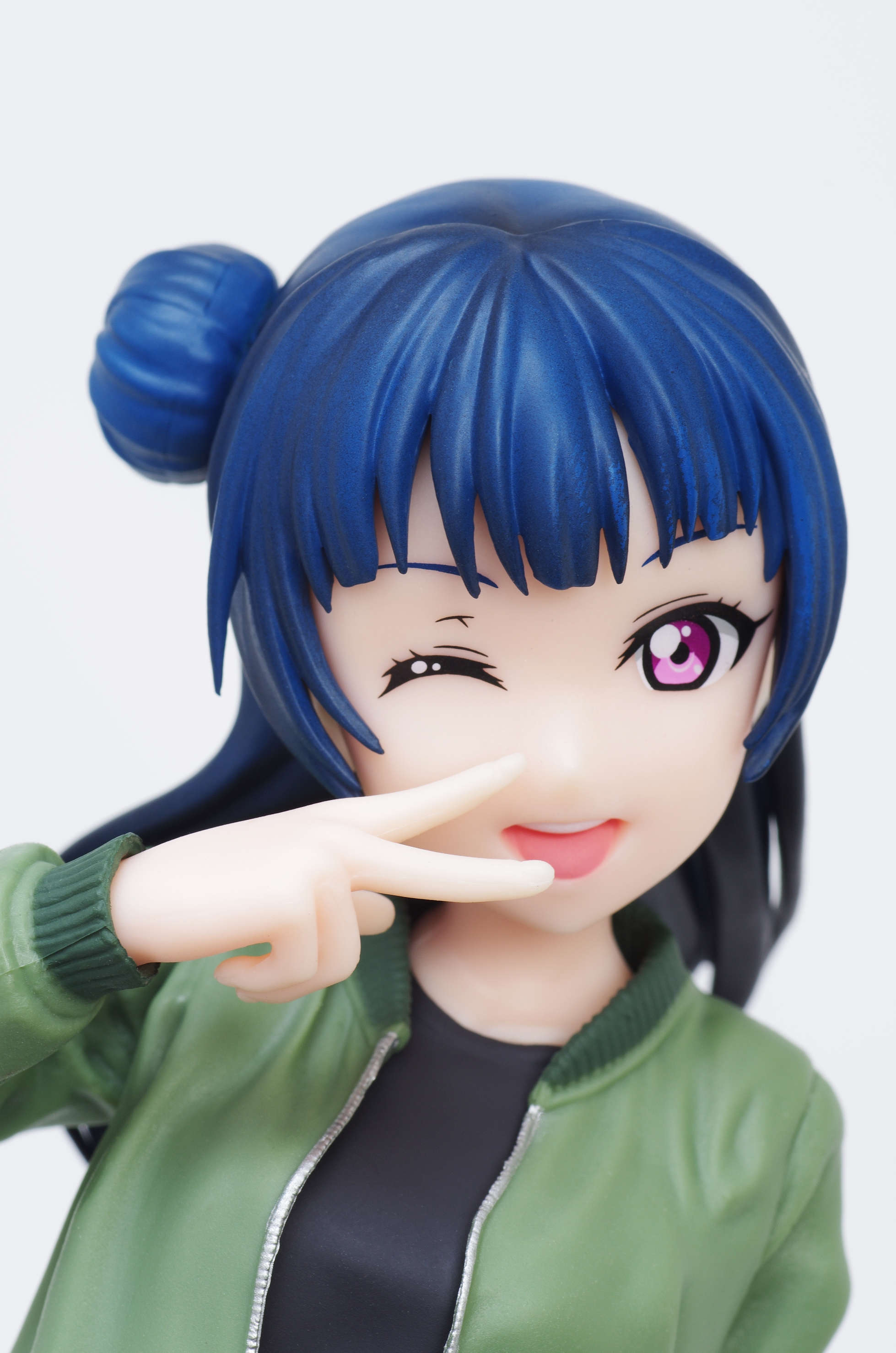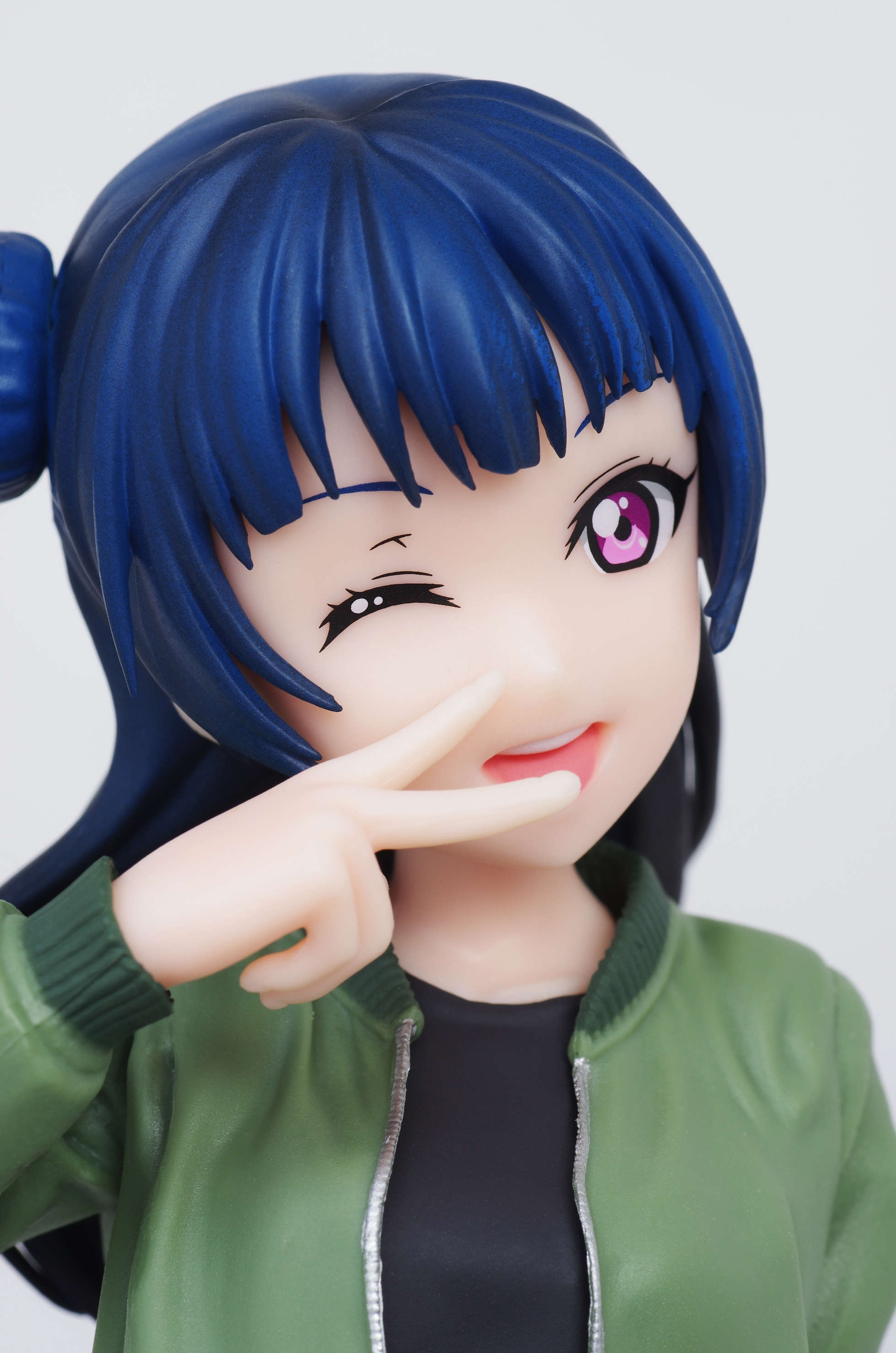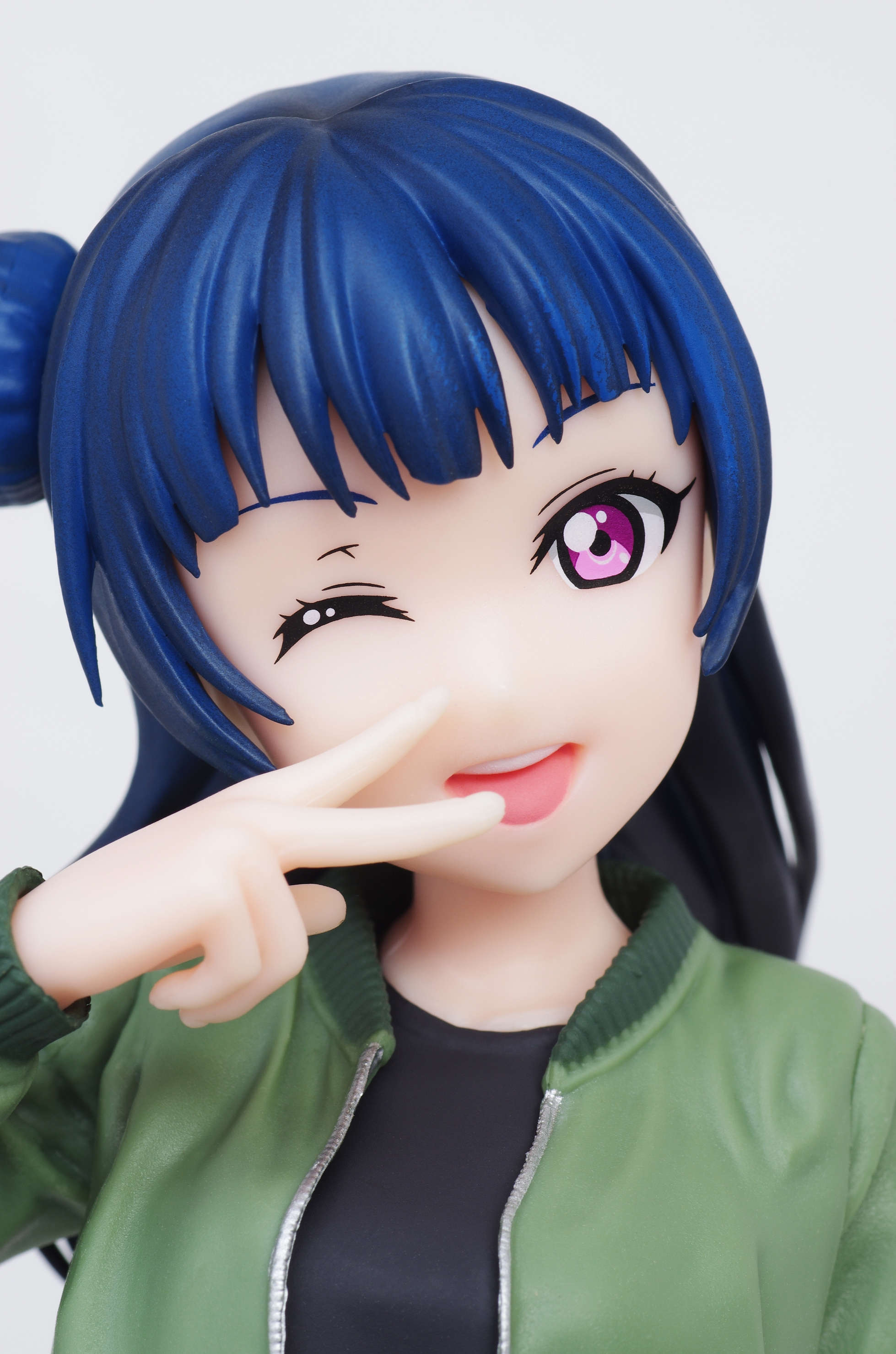 グラデーション塗装がきっちり施された青い髪(片方をお団子にした特徴的な髪型)