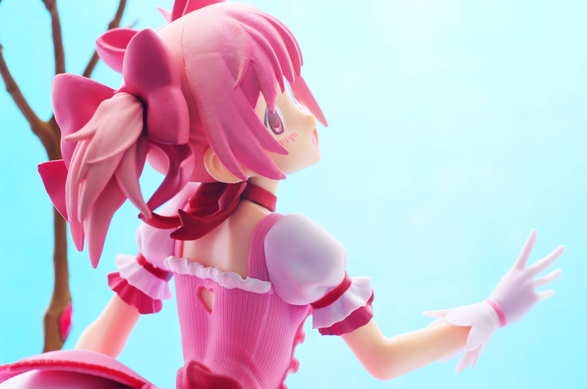 リボンで留められたピンク色のツインテール(グラデーション塗装もしっかり)