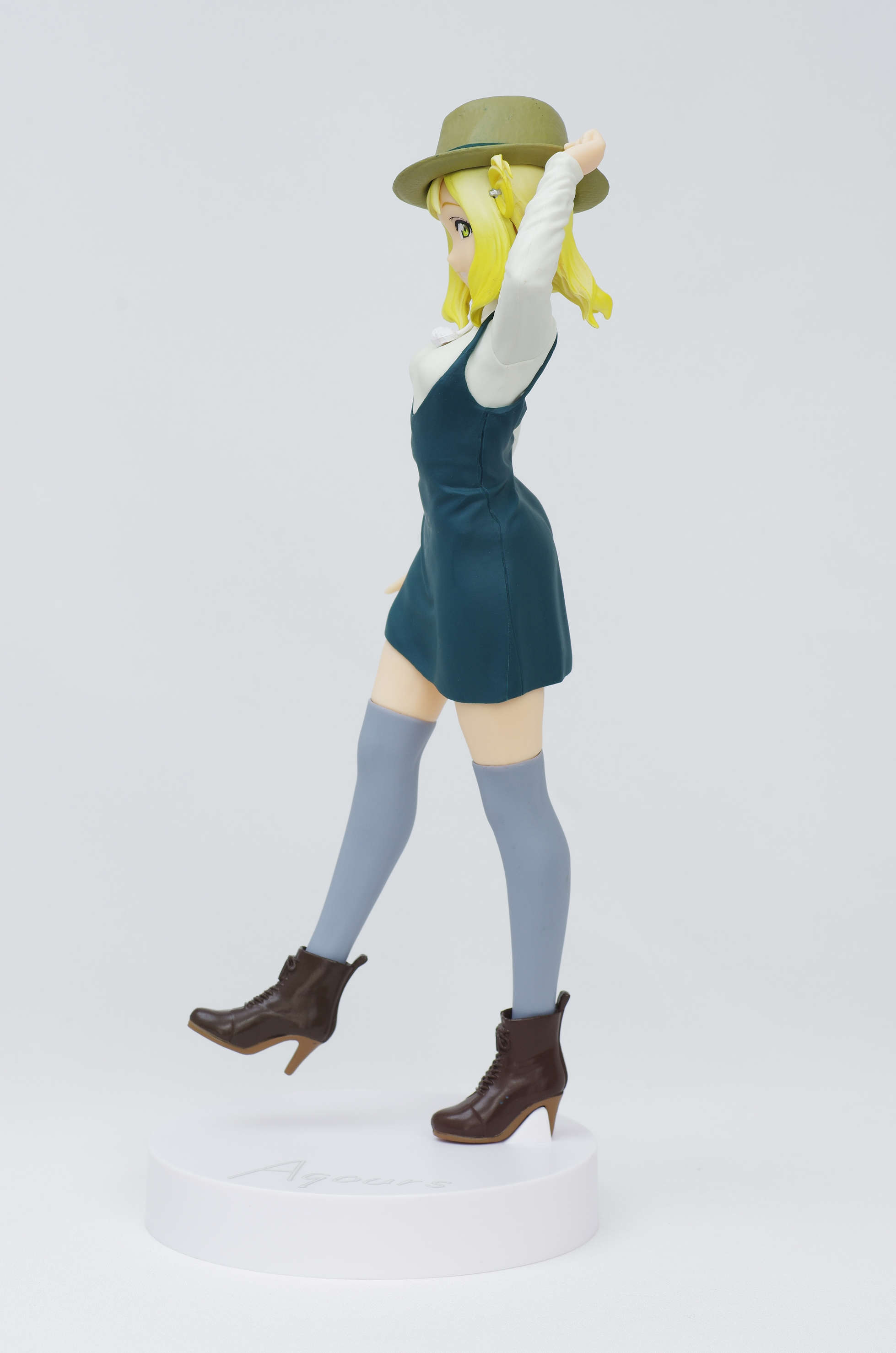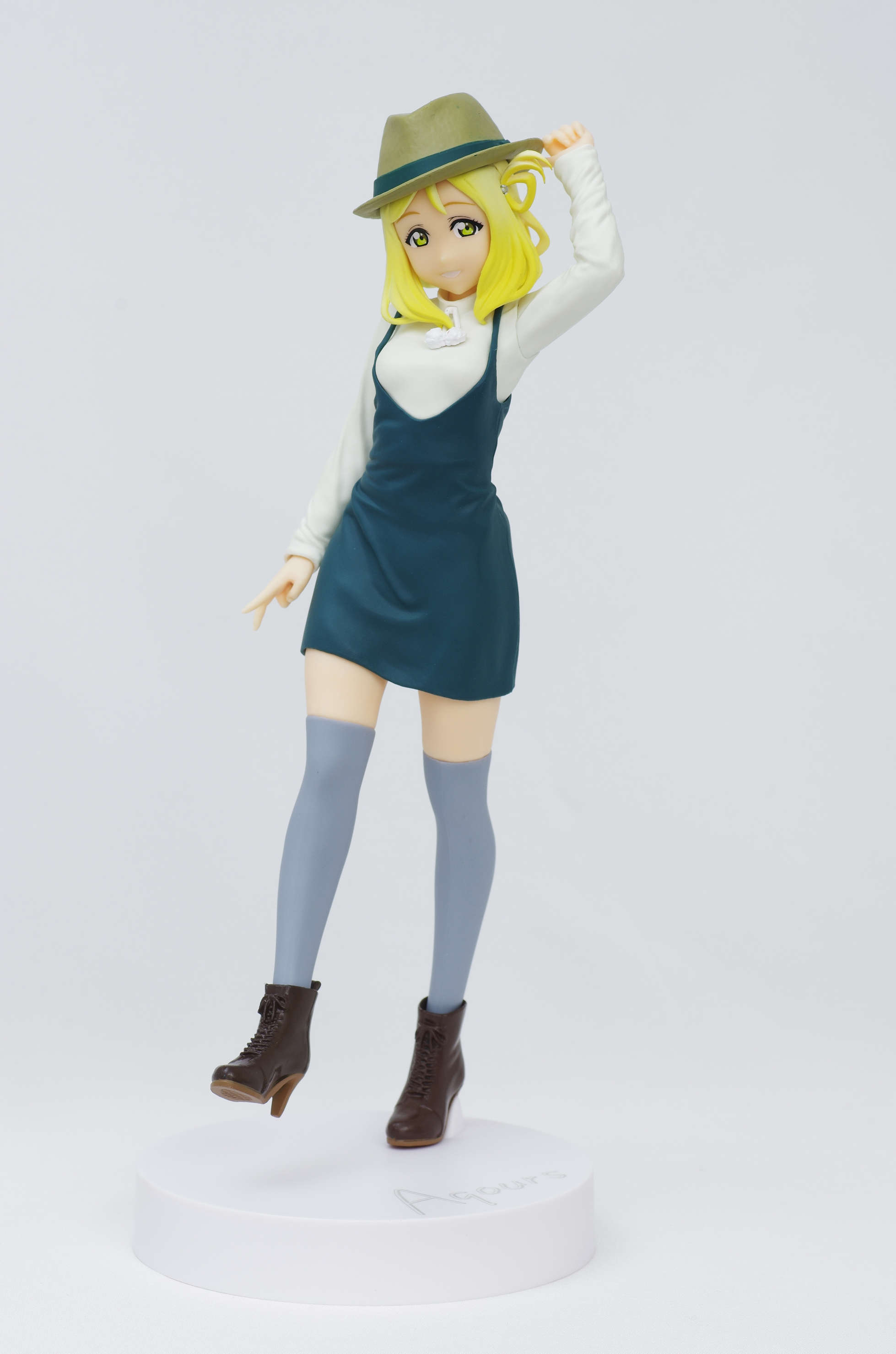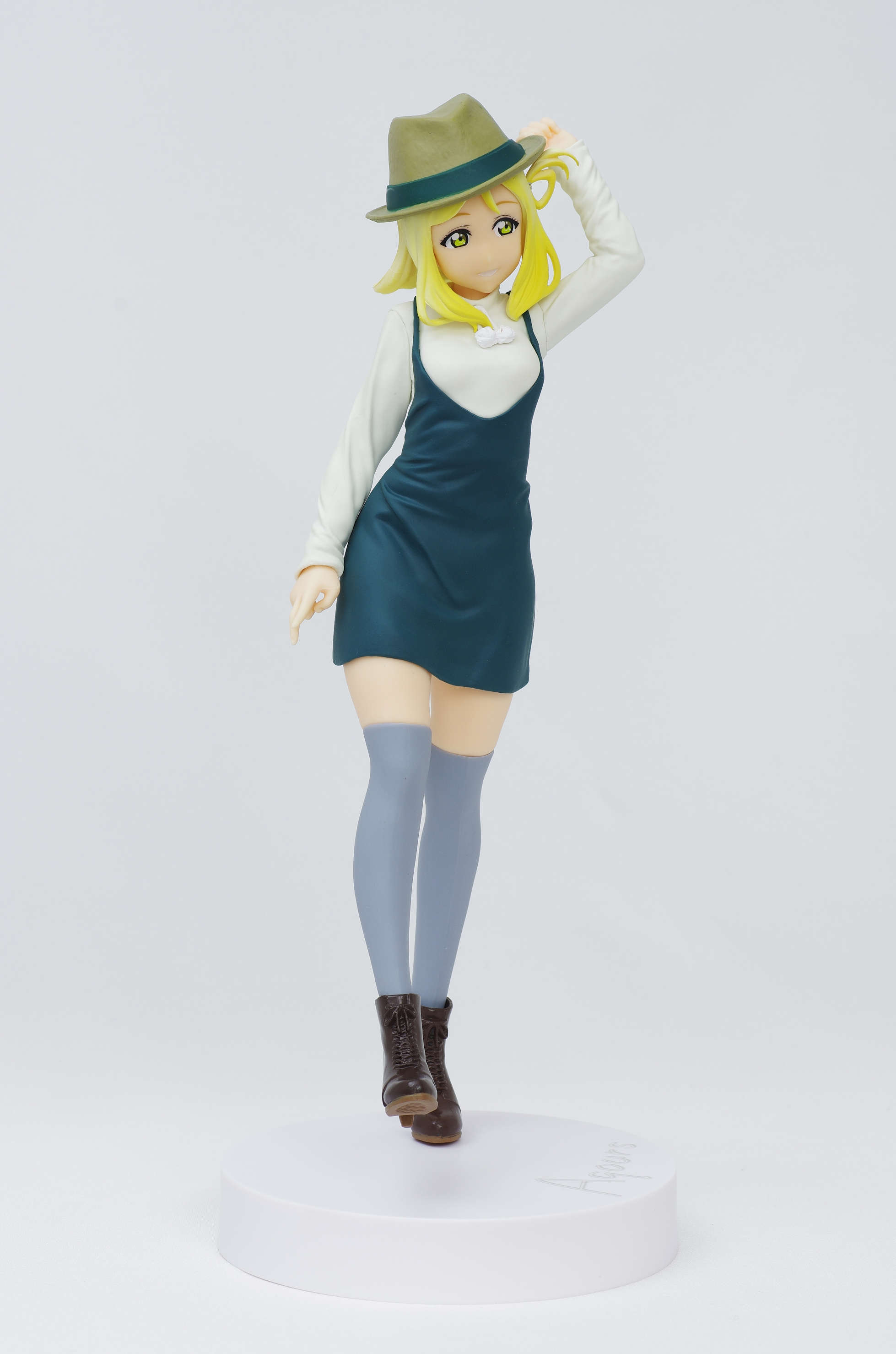 オサレな私服姿が決まってる鞠莉ちゃん♪片足立ちで帽子のツバをつまむ手の仕草が良いですね❤(シャイニ~☆)