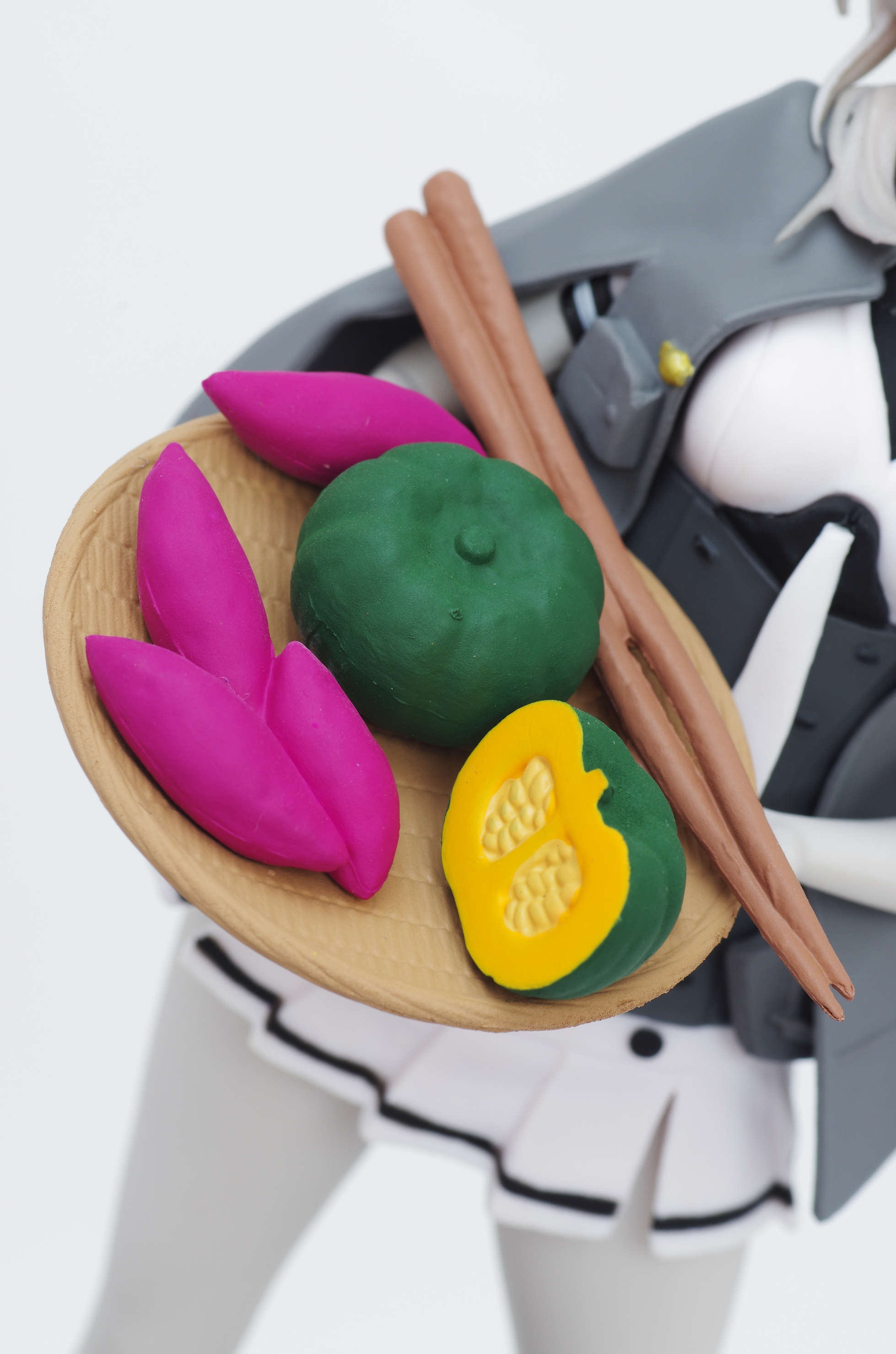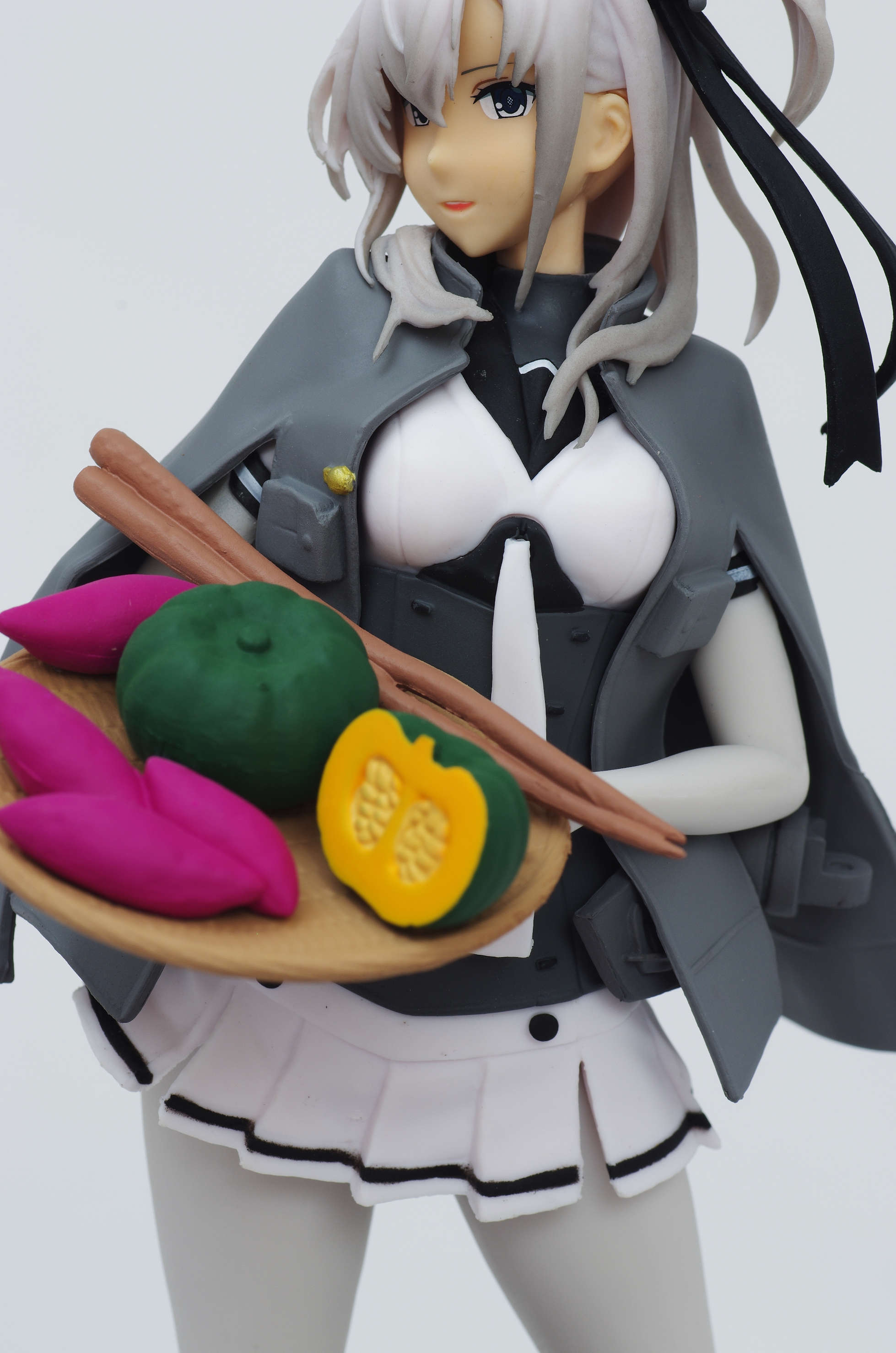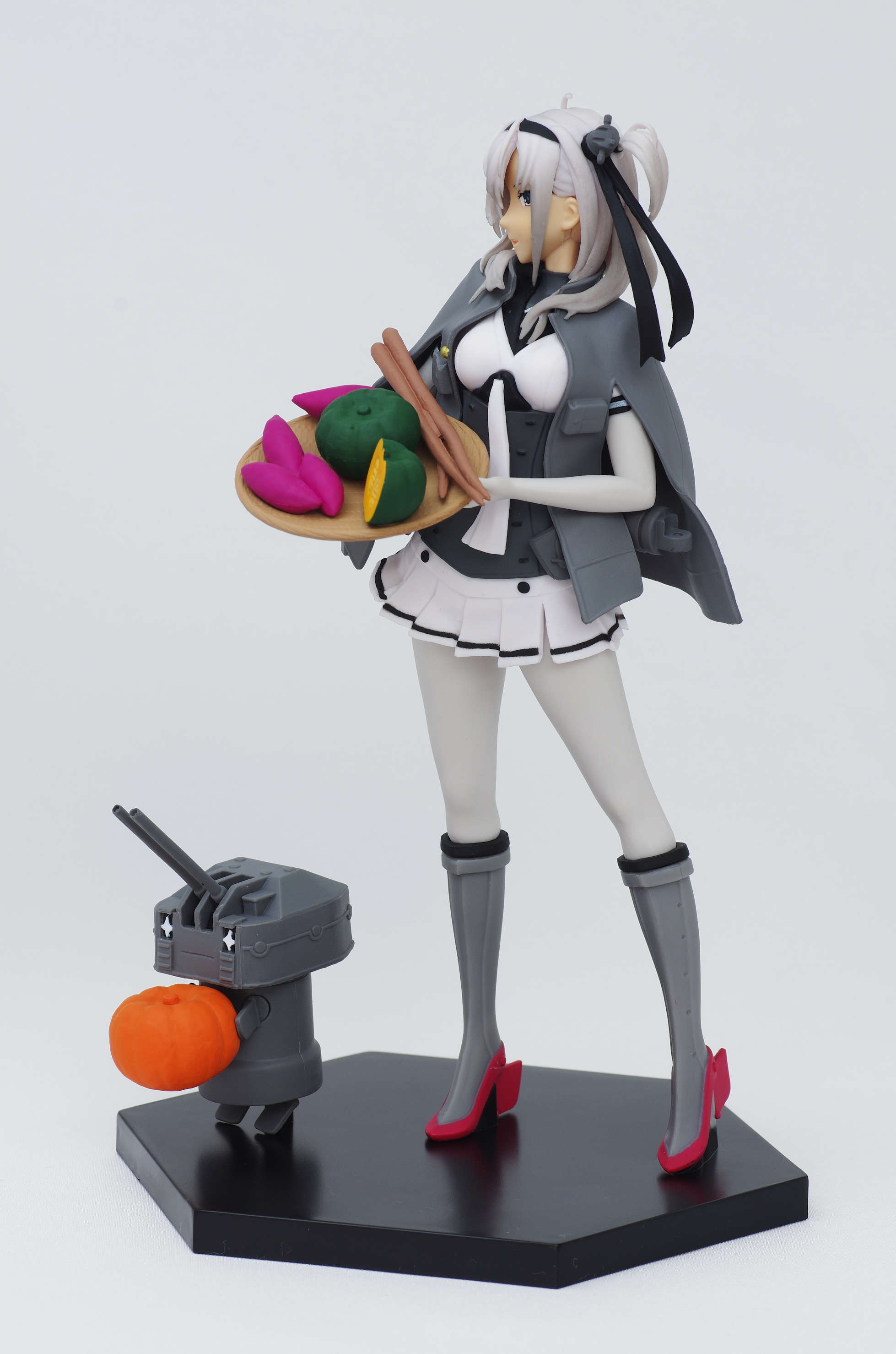 大きなザルを手に微笑を浮かべる涼月ちゃん♪長10cm砲ちゃんと秋の収穫祭かな?(オリジナルポーズで立体化)