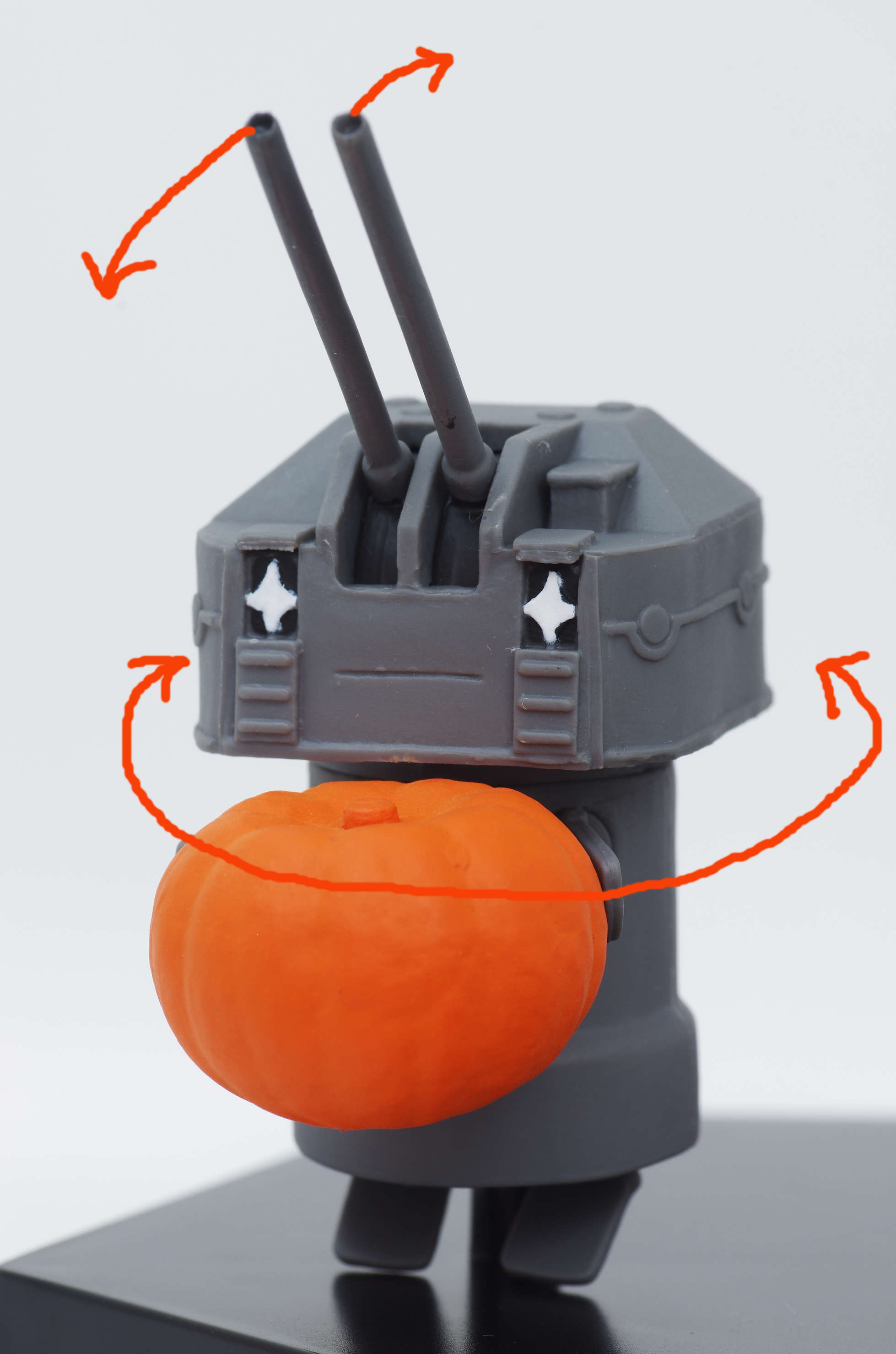 カボチャを持った付属の長10cm砲ちゃん(砲塔が上下に首が左右に可動します)