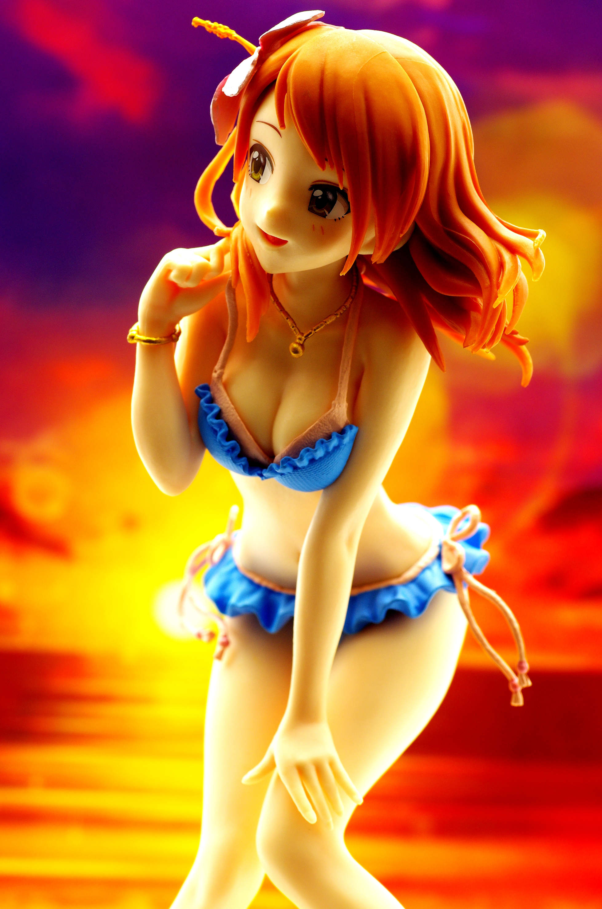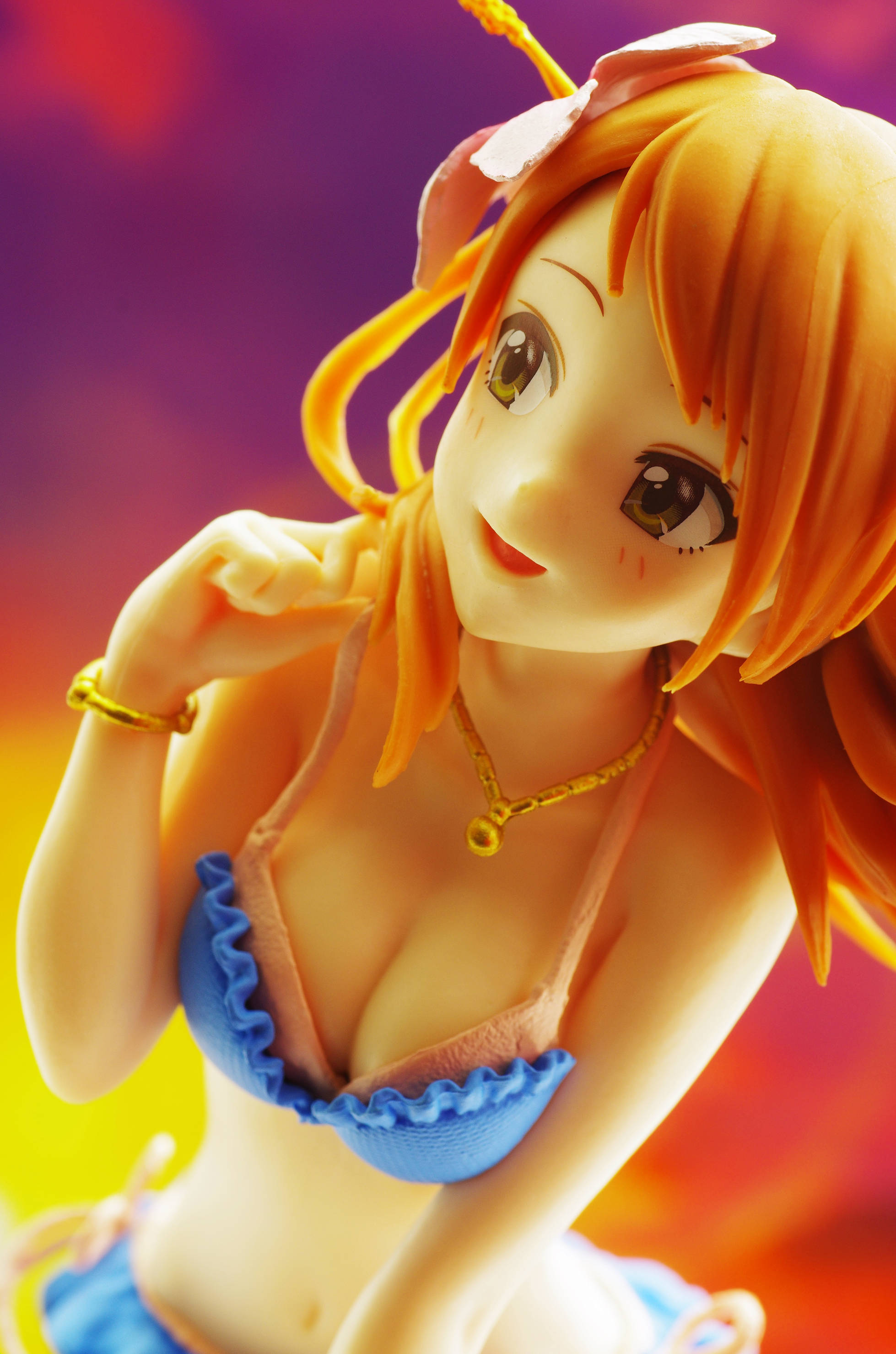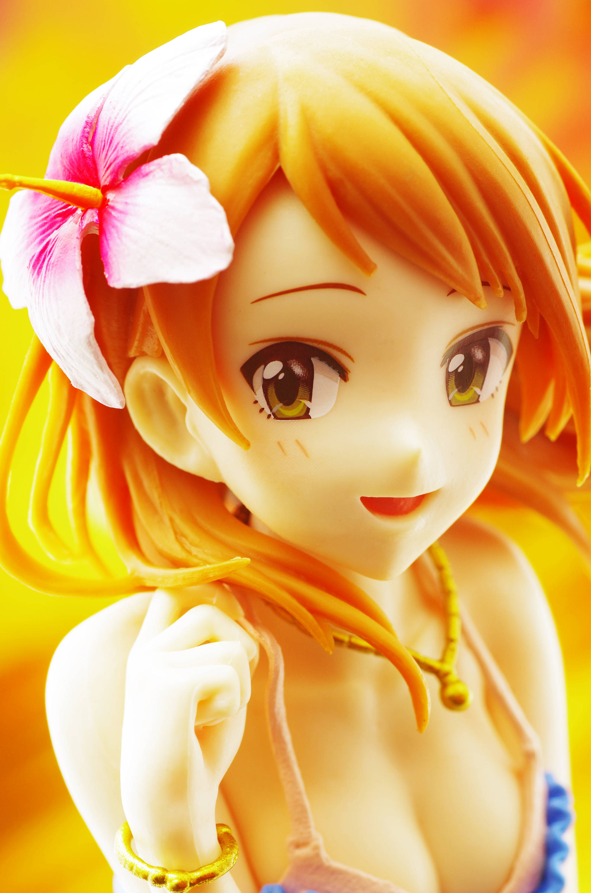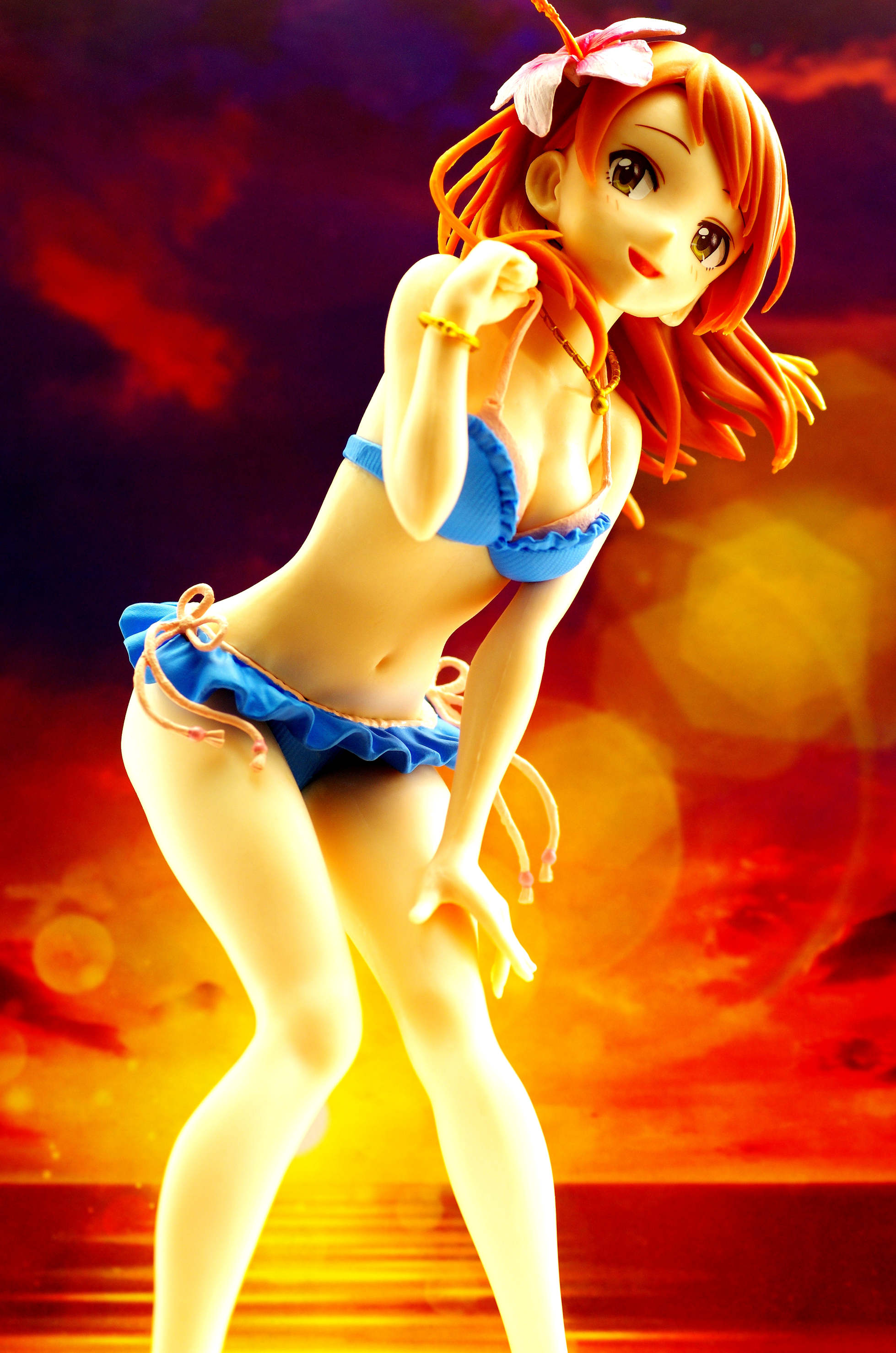 なびく茶髪に頭にはハイビスカス(髪にはうっすらグラデーション塗装も)