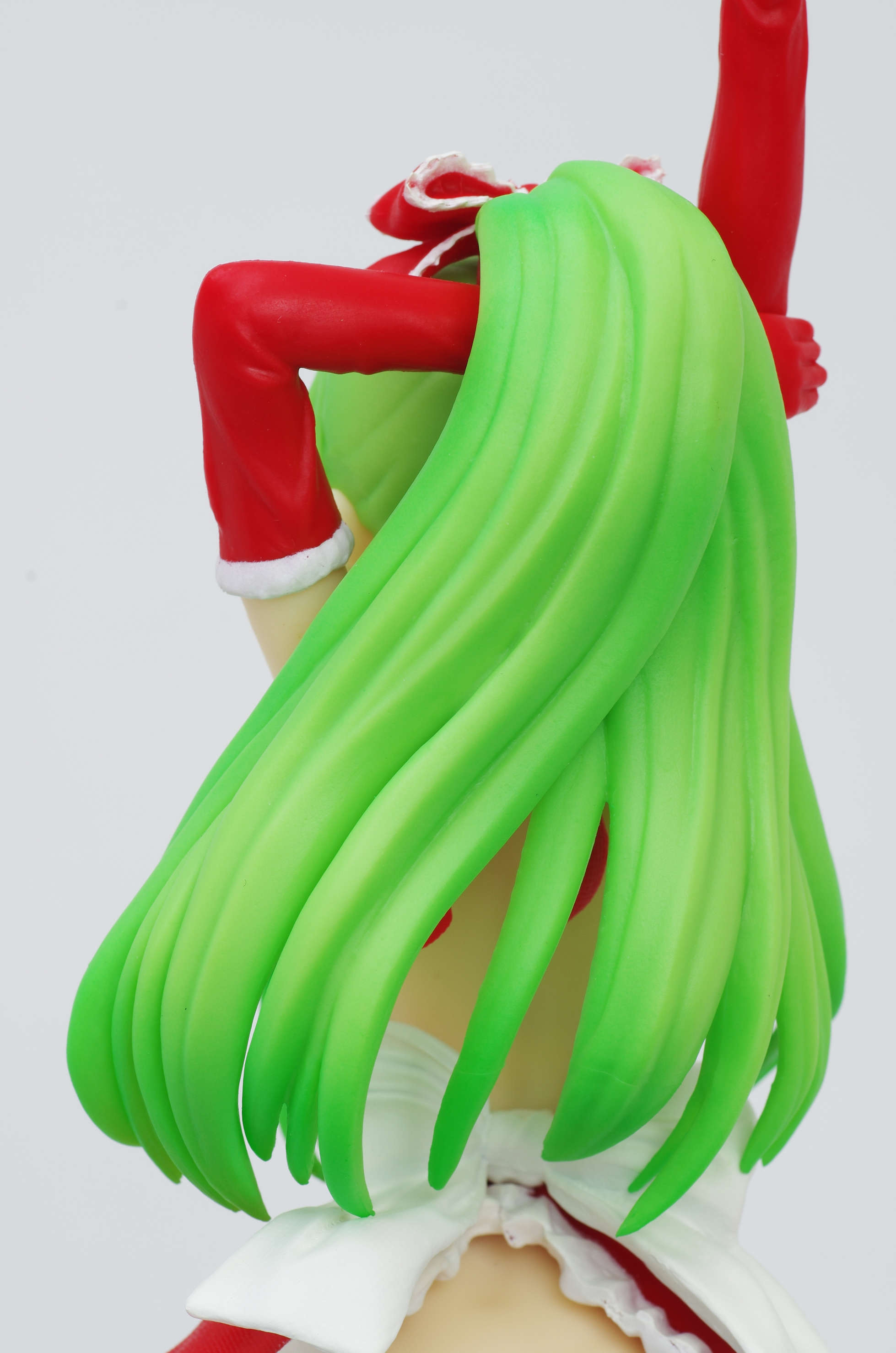 グラデーション塗装も施された黄緑色の髪でポニーテール(赤いリボンがポイント)