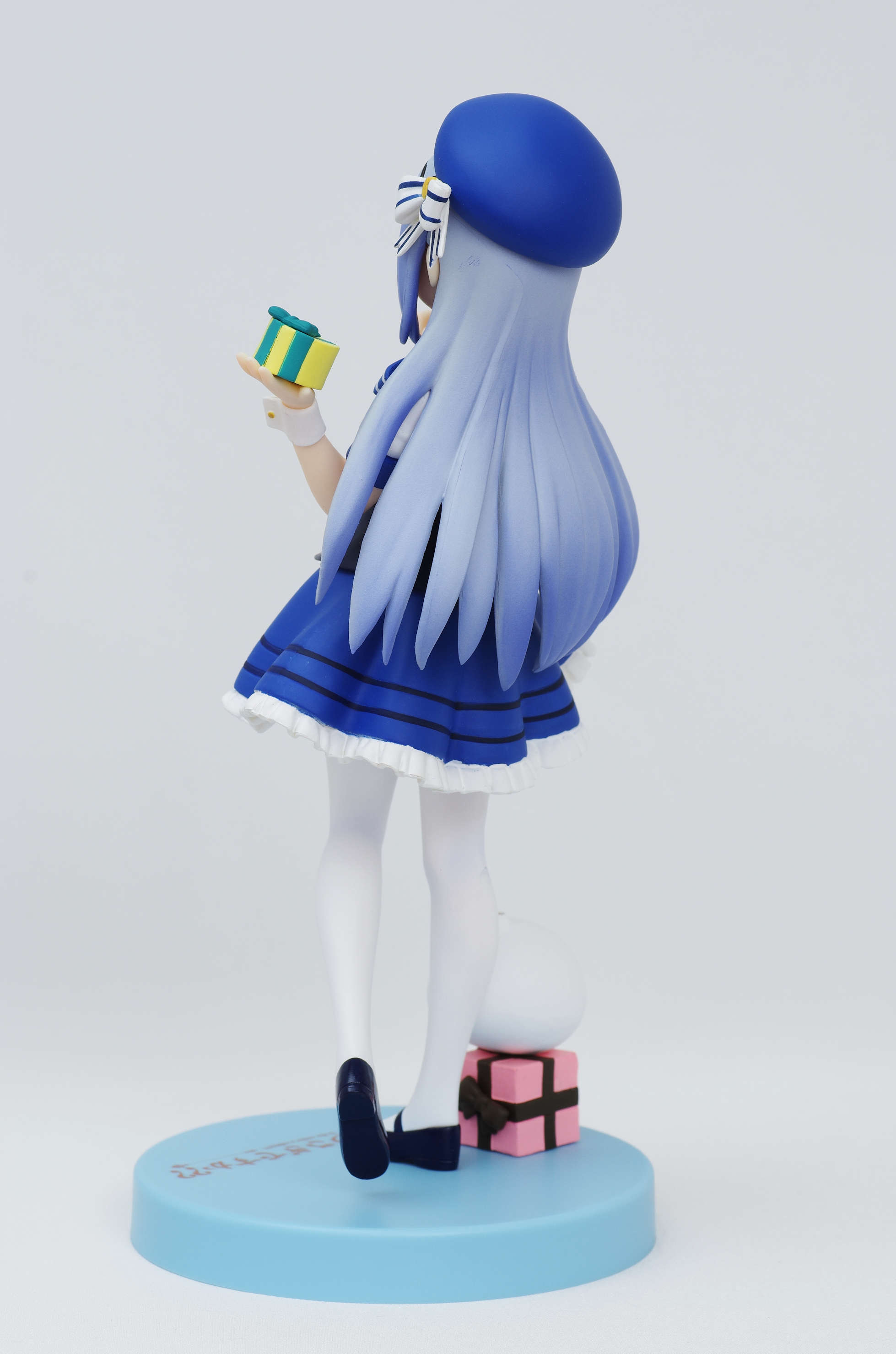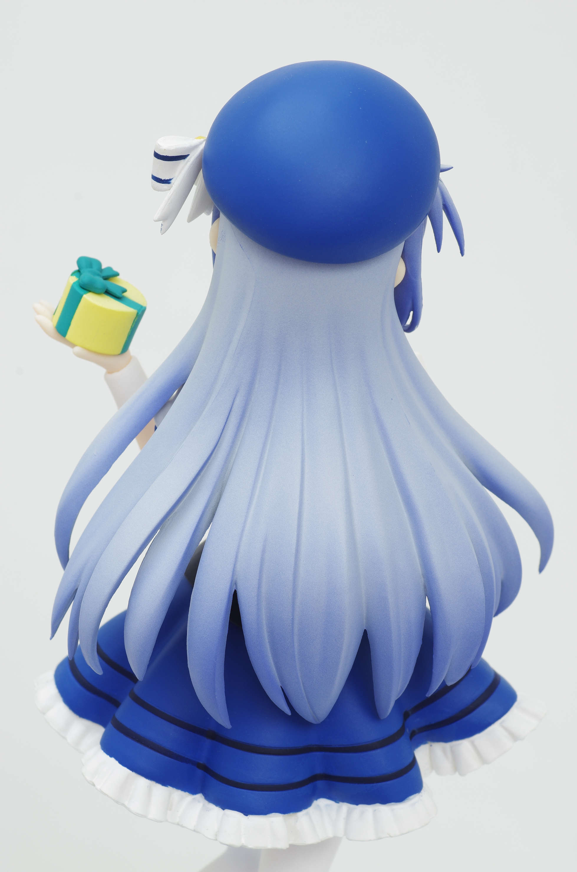 グラデーション塗装も施された水色のロングヘア(頭にはリボンの付いた帽子)