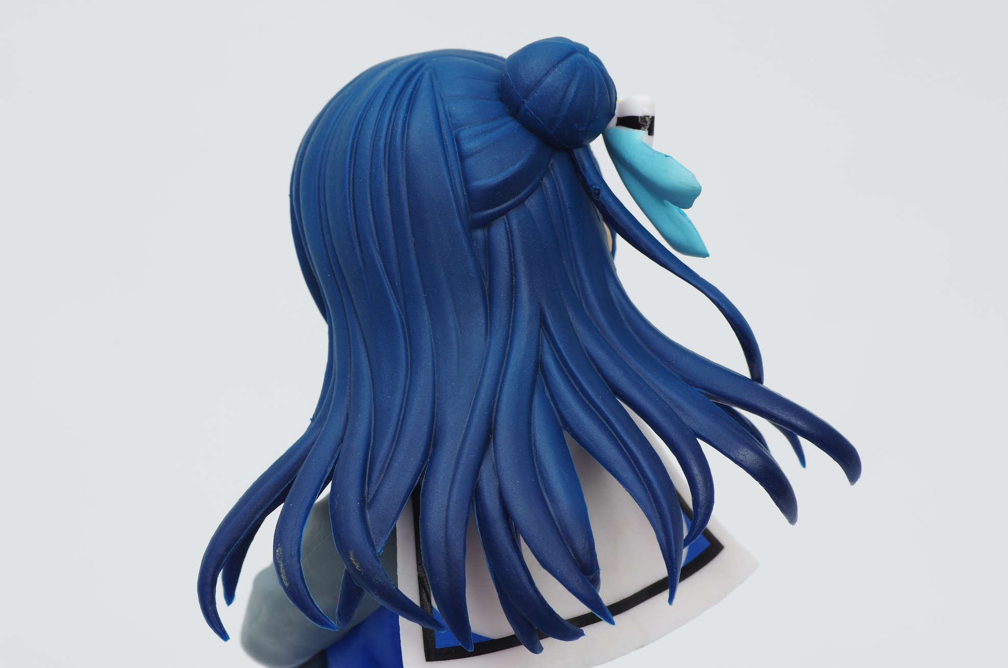 グラデーション塗装も施されたロングの青い髪(ワンポイントでリボン)